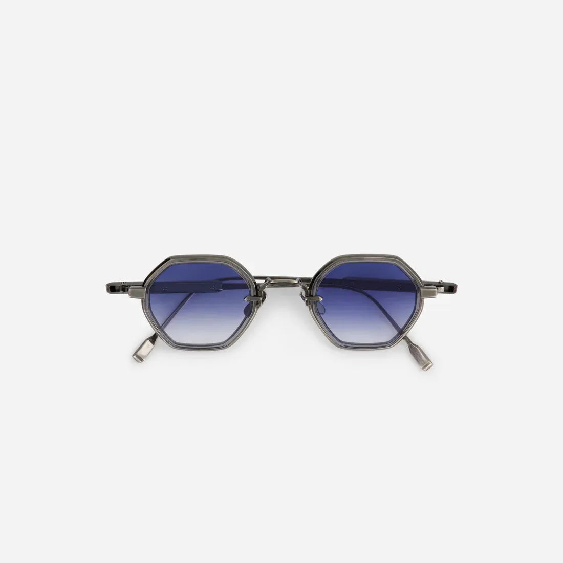 いぶしがかったシルバーにブルーのグラデーションレンズの組み合わせが爽やかに見せつつも重厚感のあるアイテムです。