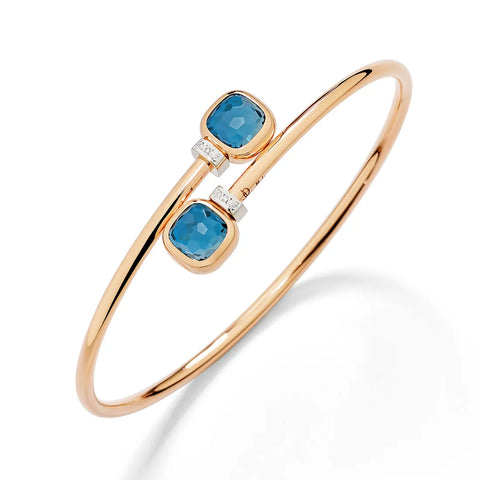 【素材】K18ローズゴールド(18kロジウムメッキ加工)、ロンドンブルートパーズ2個約18カラット、ホワイトダイヤモンド76個約1.5カラット