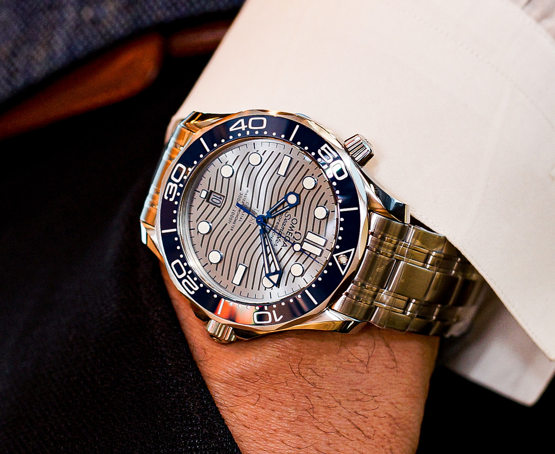 シーマスター ダイバー300Mはワイシャツの袖口から大きくはみ出すこともないと思いますし、オンでもオフでも非常に使いやすい1本です。