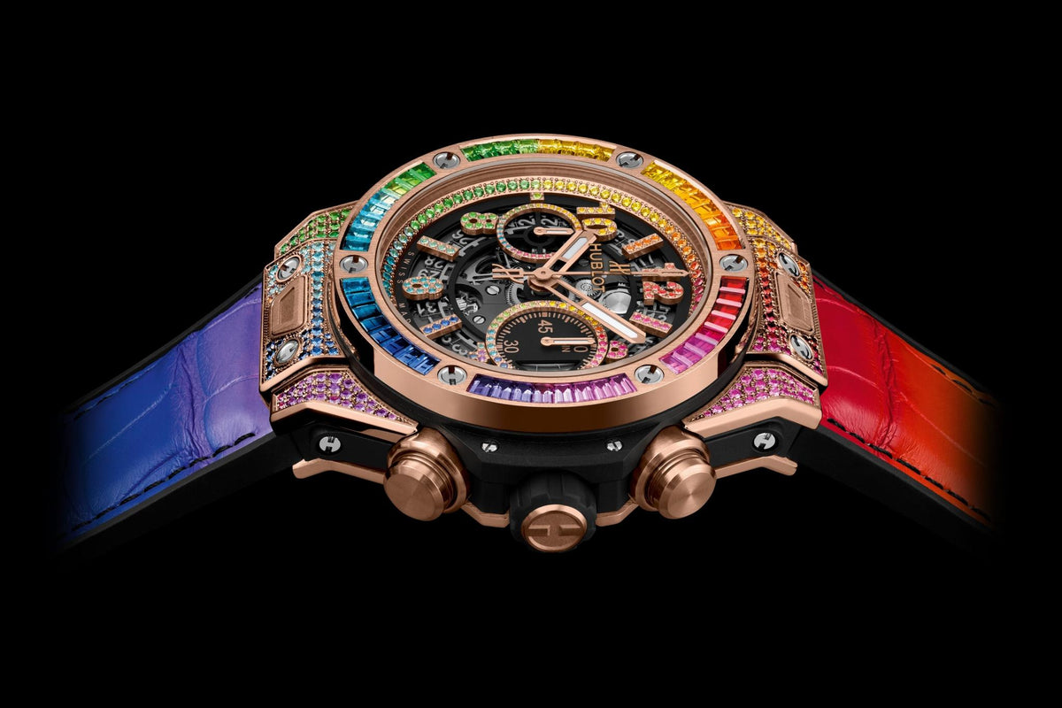 融合の名手であり貴金属の錬金術師であるウブロは、従来の18Kゴールド5Nよりさらに赤い色調を持つ新色のゴールドを開発しました。プラチナを加えて「キングゴールド」と名付けられた特殊な合金で、通常のピンクゴールドよりも赤みが強く、長期間に渡って表面の酸化を防ぎます。キングゴールドの素材をハイテクセラミック、ラバー、カーボンなど最新の素材と組み合わせているのが特徴です。