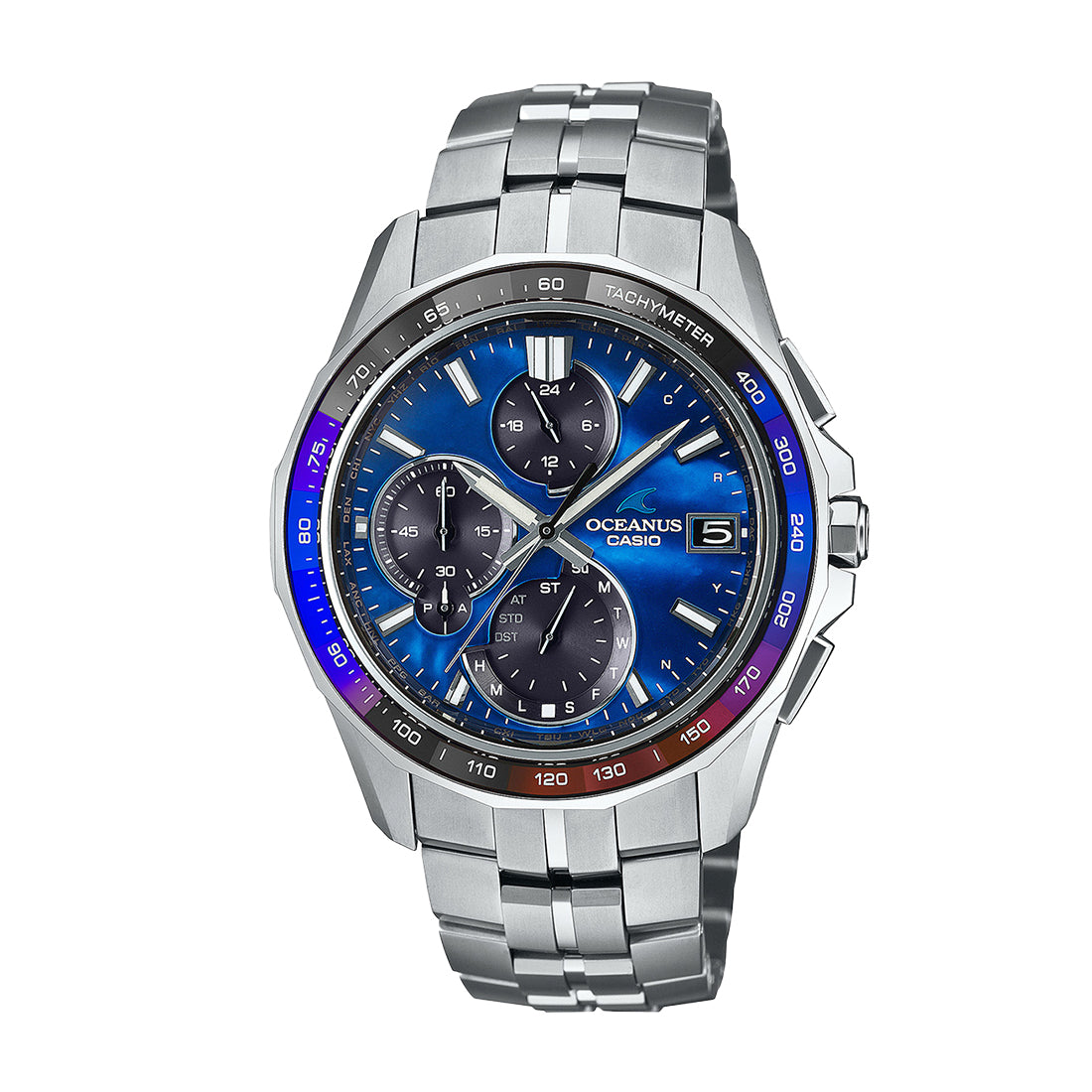 オシアナスは、オシアナスブルーを基調としたスタイリッシュデザインにソーラーなのに高級感のある文字板を演出する国産カシオウォッチのハイエンドモデル。