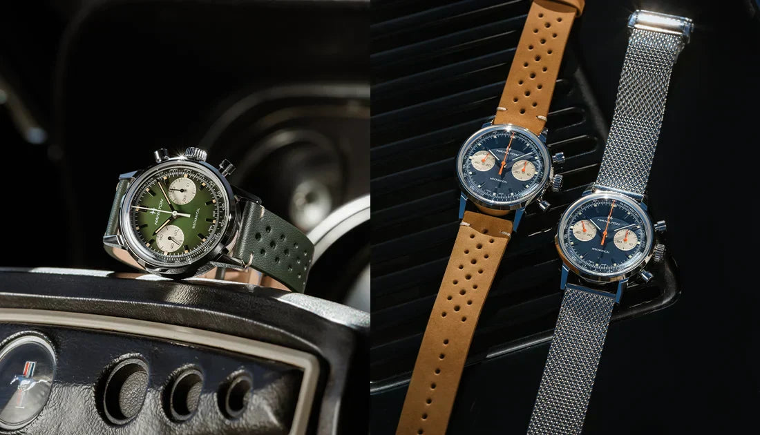 手巻き式、クロノグラフムーブメントH51を搭載した「イントラマテッククロノグラフH」に1960年代後半~1970年代前半のモータースポーツ、自動車デザインから着想を得た新カラーが追加されました。