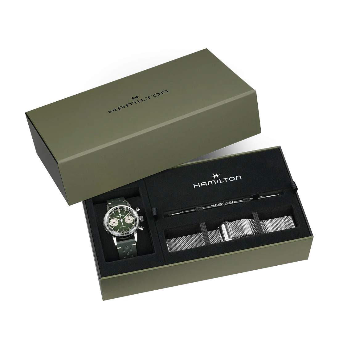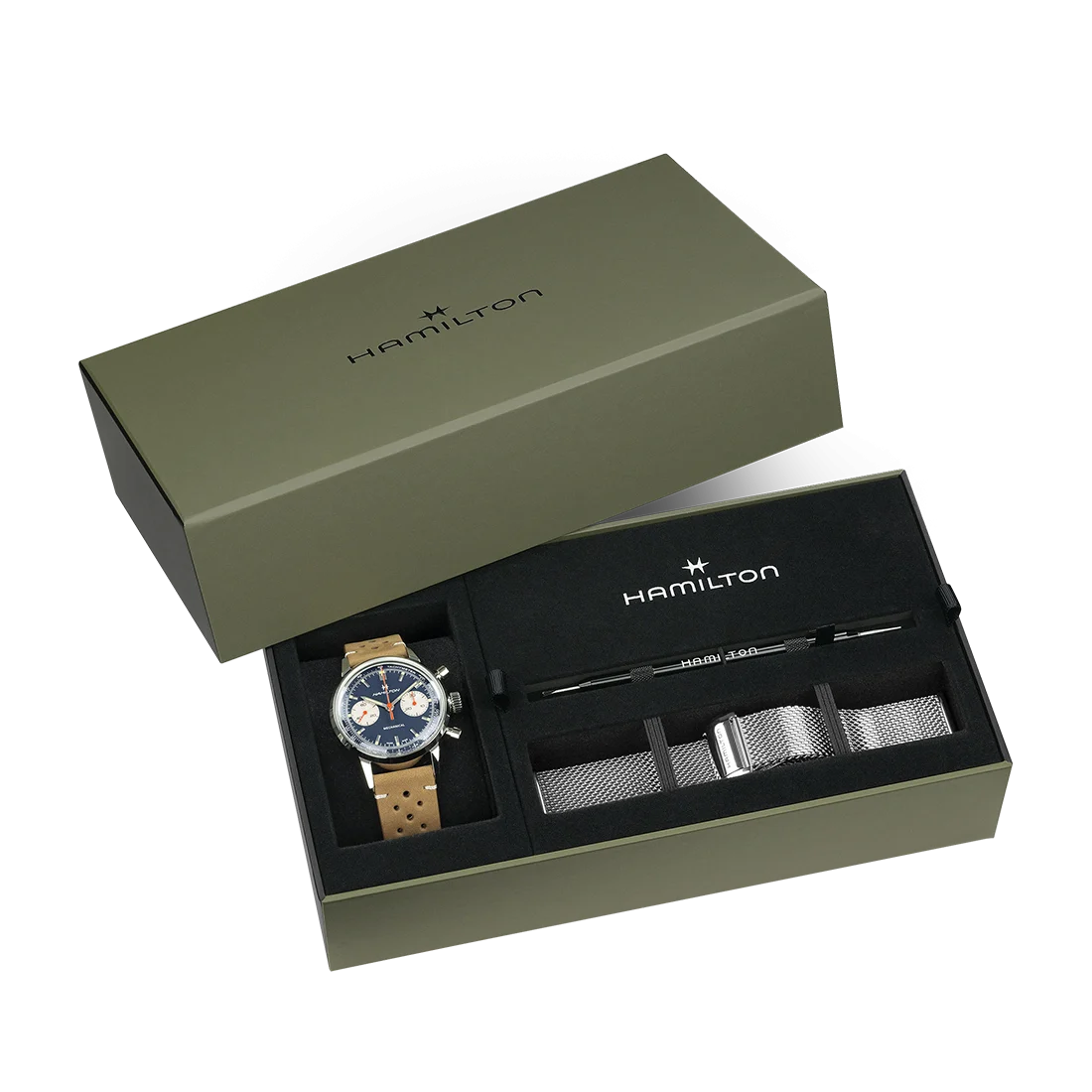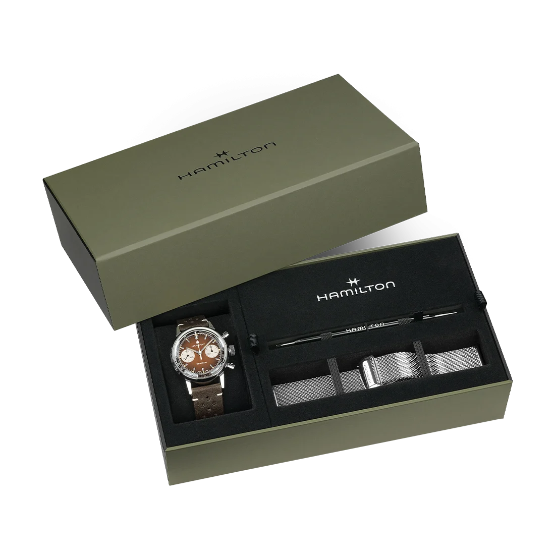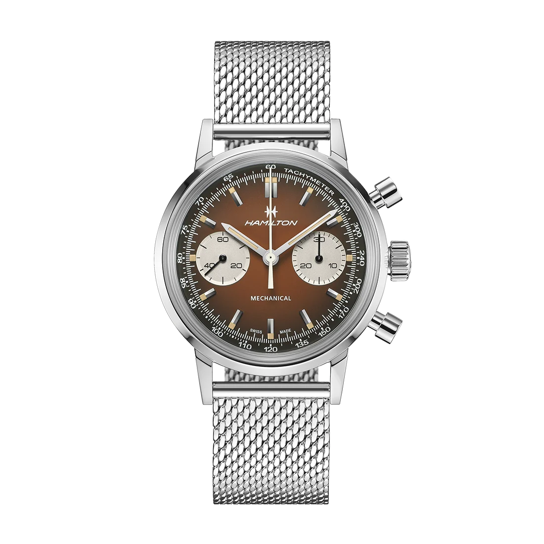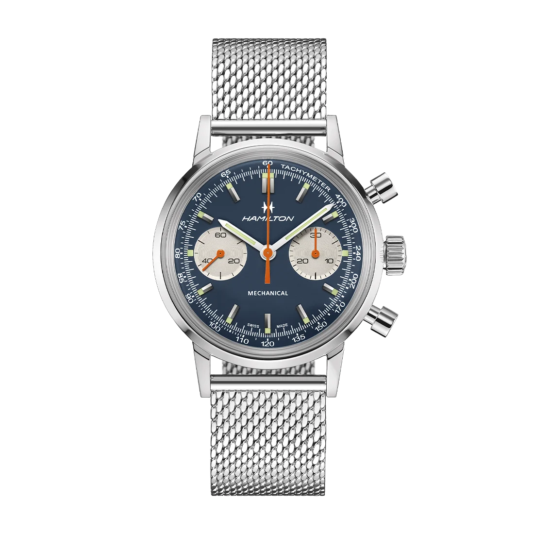 1968年の発表直後に瞬く間に人気となったハミルトン初の自動巻きクロノグラフである「クロノグラフA」からインスピレーションを得た現行イントラマテックシリーズ。