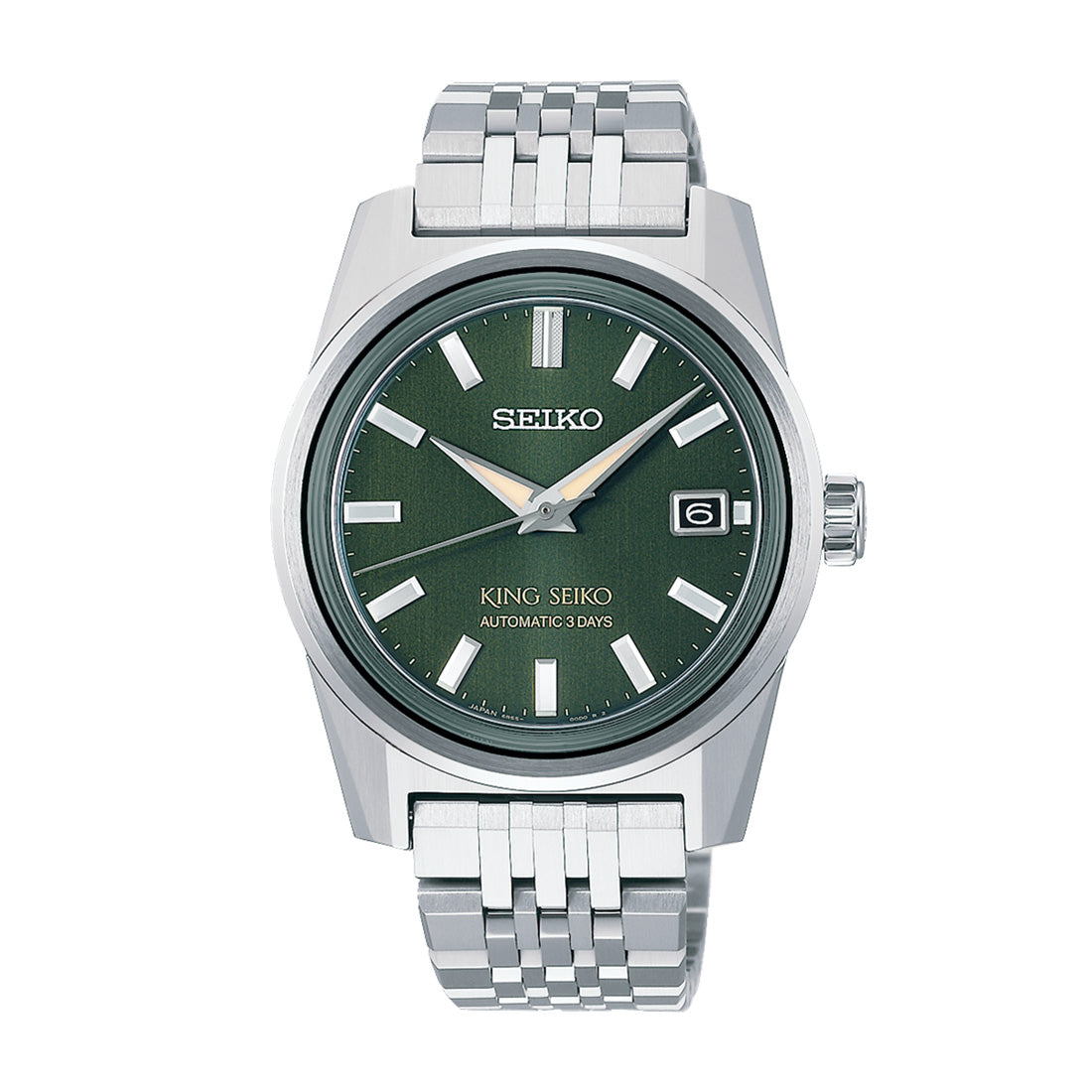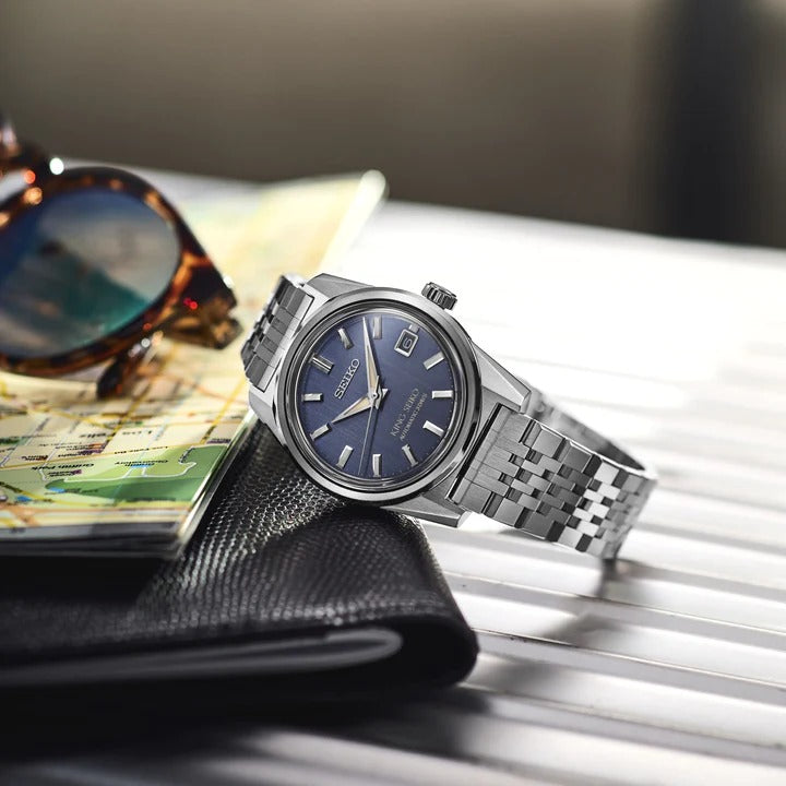時代を超えて評価される2代目“KSK”からインスパイアされ、現代のデザインに落とし込んだキングセイコー。 国産高級腕時計としての新たな在り方を示し、時代をリードしたレガシーを持つキングセイコーは、実用性と美しいデザインの両立を実現しました。 シャープで堂々としたたたずまいが魅力です。