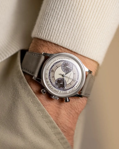 ファーラン・マリは、スイス・ジュネーブで2人の若い時計愛好家によって設立されました。二人が最初に紡いだ物語は、「メカ・クォーツ クロノグラフ」でした。これはクォーツをベースに機械式モジュールを組み合わせた機構で、1980年代のクォーツショックの最中、ヴィンテージウォッチの操作感を再び取り戻すために生まれたものです。