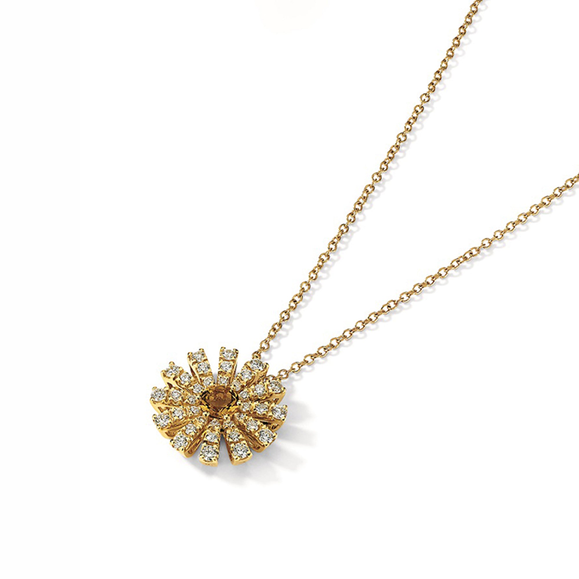 マルゲリータには、立体感とフォルムが美しい3つのバージョンがあり、ダイヤモンドとホワイトゴールド、ピンクゴールドとブラウンダイヤモンドとアメシスト、イエローゴールドとダイヤモンドとシトリンという組み合わせです。 どのバージョンも、ロマンチィックで気品のある女性の美しさを際立たせます。