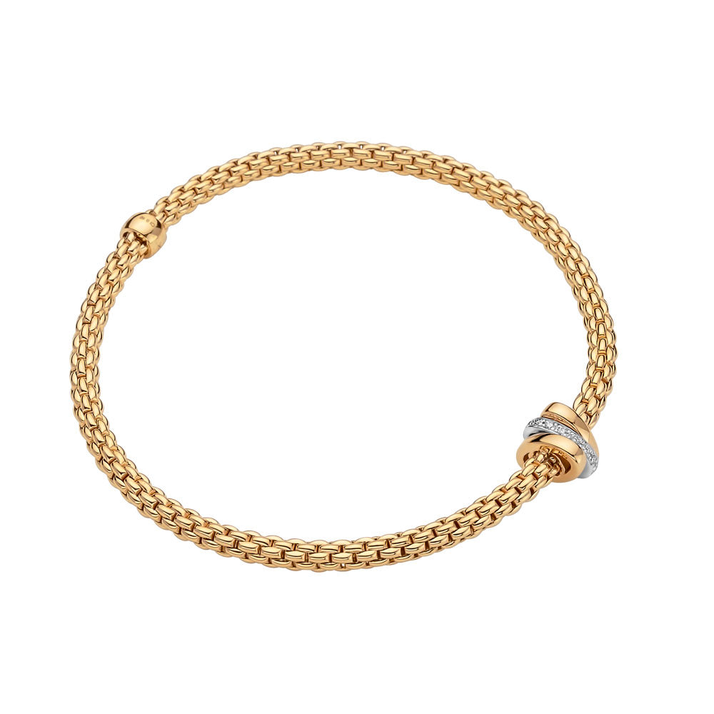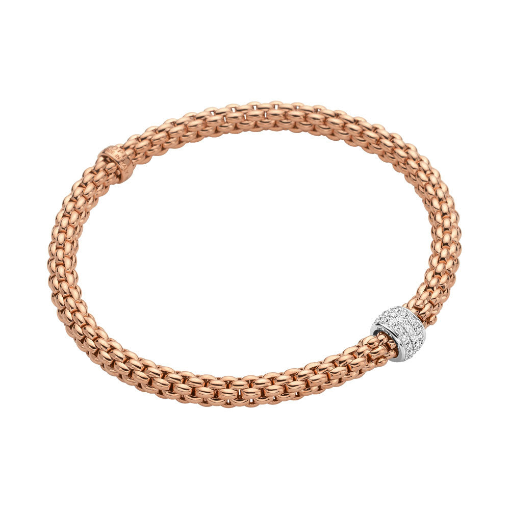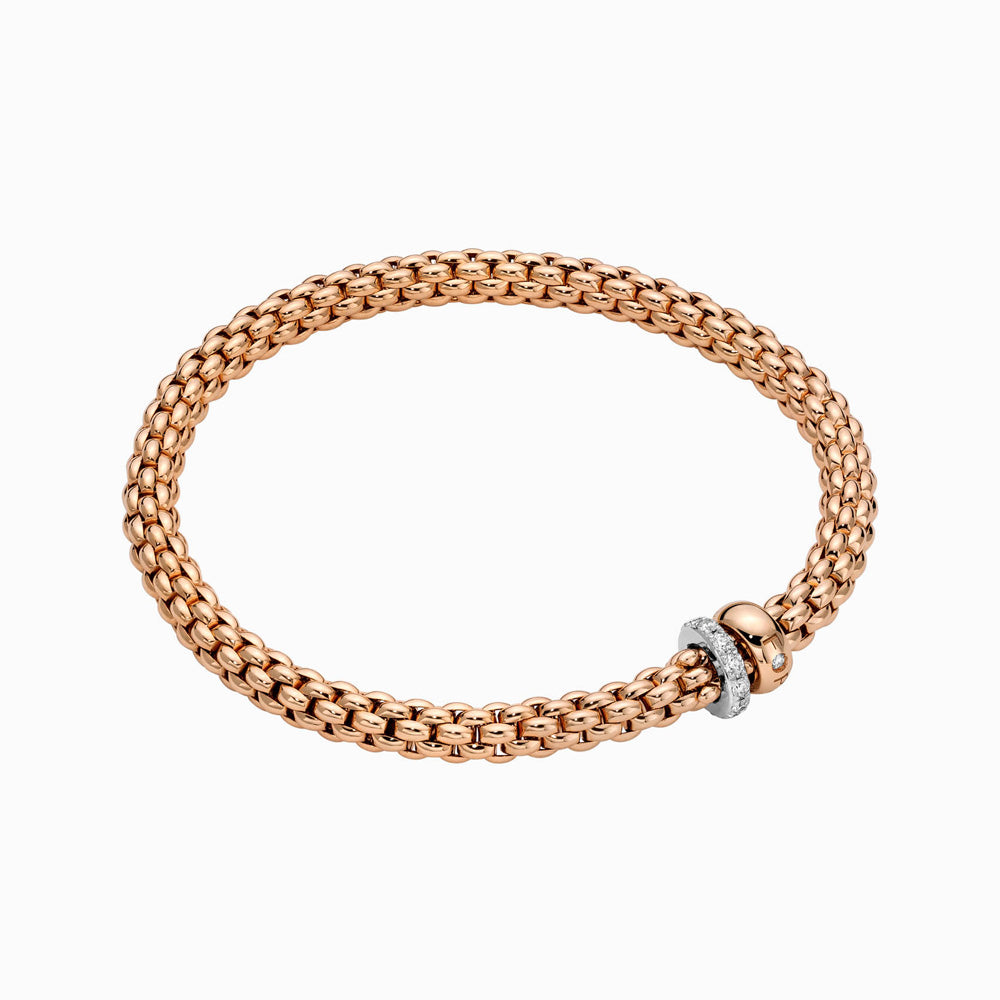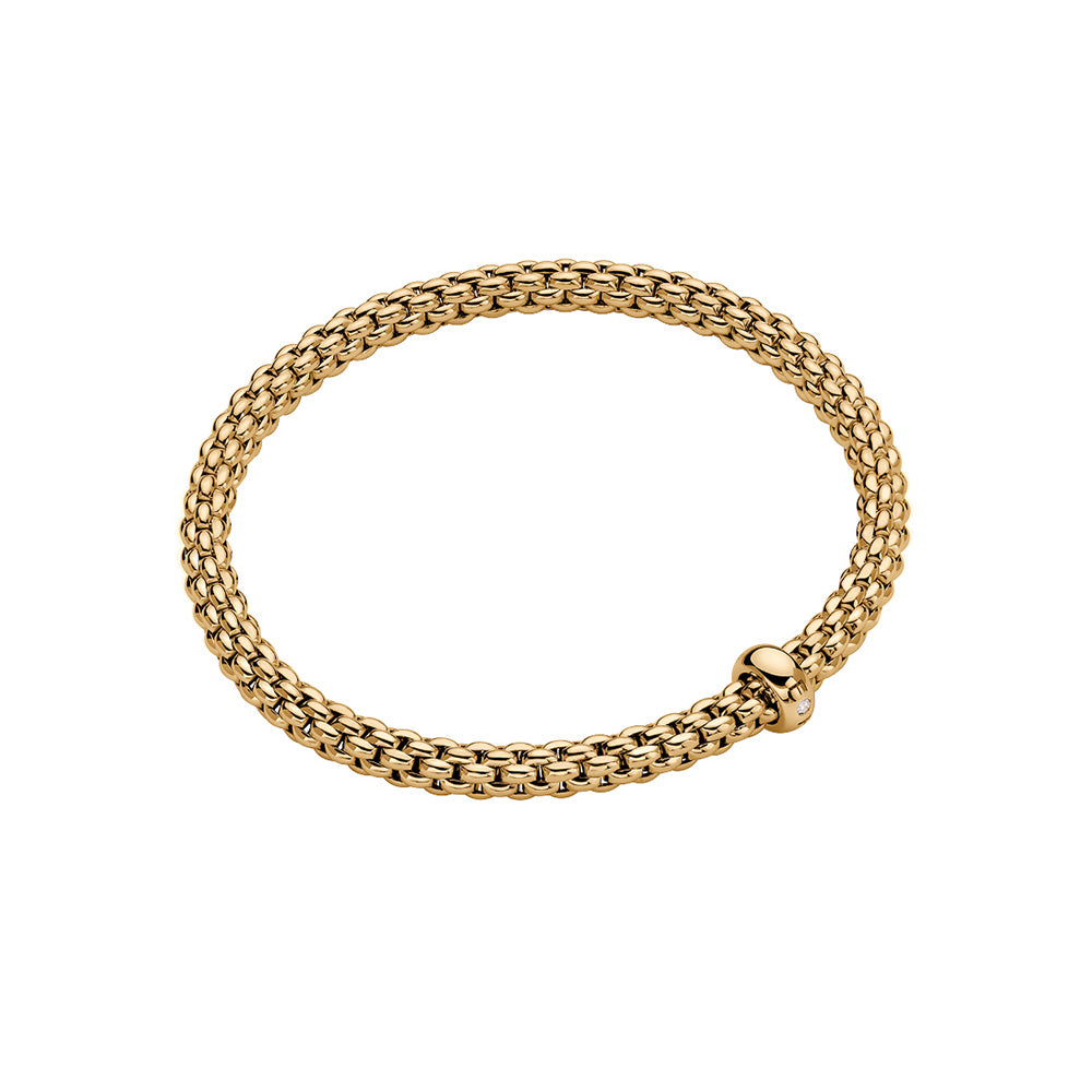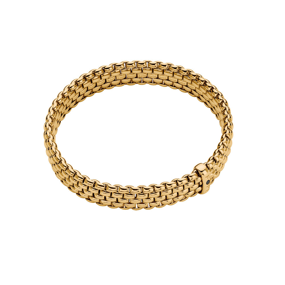 5つのコアコレクション(Prima、Solo、Eka、Vendôme、Panorama)から発売される、新しいマストハブコレクション。 FOPEのシグネチャーである伸縮するブレスレットのコンセプトを共有しながら、ブランドのDNAに基づいて再設計されました。 ブレスレットにセットされたプレーンゴールドのロンデルには、FOPEの「o(オー)」に1粒のホワイトまたはブラックダイヤモンドがセットされています。さりげないアクセントは、男性と女性の両方にアピールします。