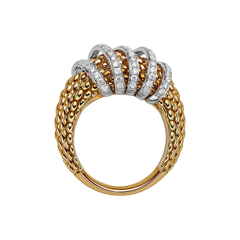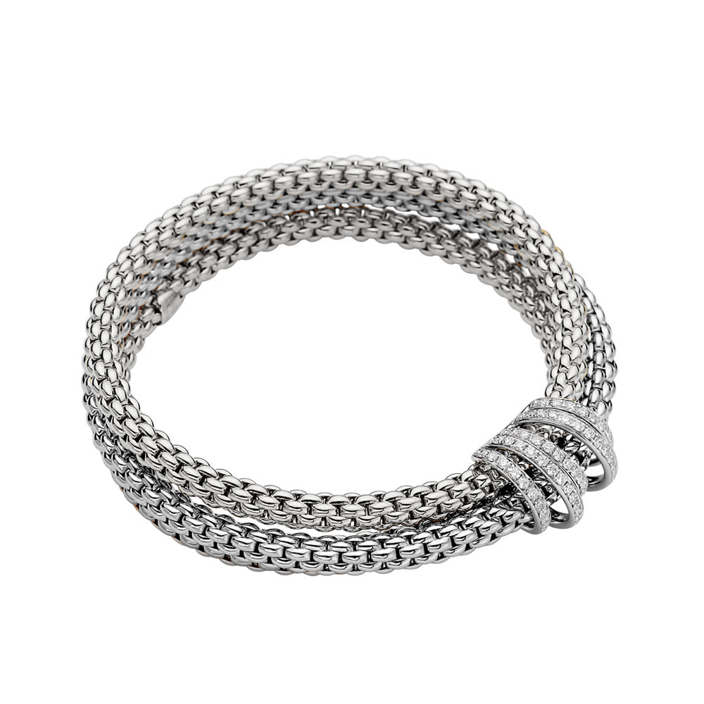 2010年に発表されたソロコレクションは、現在もなお人気を博し続けているFOPEコレクションの一つです。 発表以来、18Kゴールド製ラウンドメッシュチェーンを採り入れたアイテムが少しずつ加わり、さまざまなカラーやスタイルの組み合わせをお楽しみいただけるようになりました。柔軟性に富むブレスレットのゴールドメッシュには、ゴールド製ループやサイズの異なるダイヤモンドをあしらった数々のバージョンも加わりました。揃いのネックレスやイヤリング、リングもご用意しています。