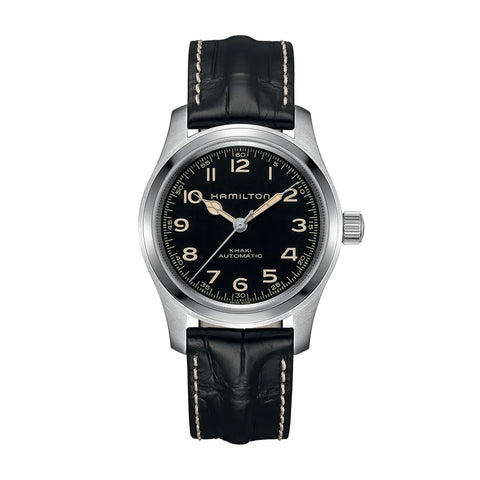 ハミルトンのキャリバーH-10はクラシックな3針機能に、日付表示と卓越した80時間の標準持続時間を組み合わせています。耐久性に優れた性能とタイムレスなスタイルを体現するモデルです。