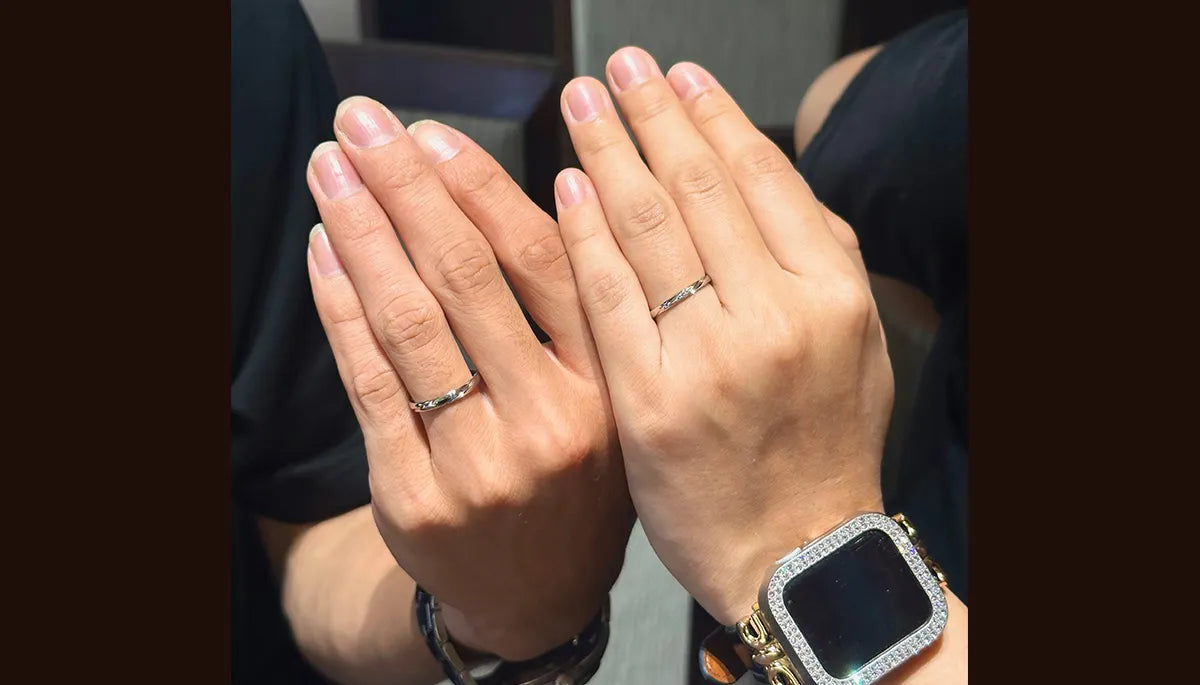 お二人にお選びいただいたリングは、穏やかな海辺に吹く風をイメージしたデザインです💍女性様の指輪内側にお留めしているブルーダイヤモンドも、特別感があり素敵でした!R様 N様とても楽しい時間を誠にありがとうございました✨指輪のクリーニングなど、ぜひお気軽にお立ち寄りいただければと思います!またお二人にお会いできることを楽しみにしております!