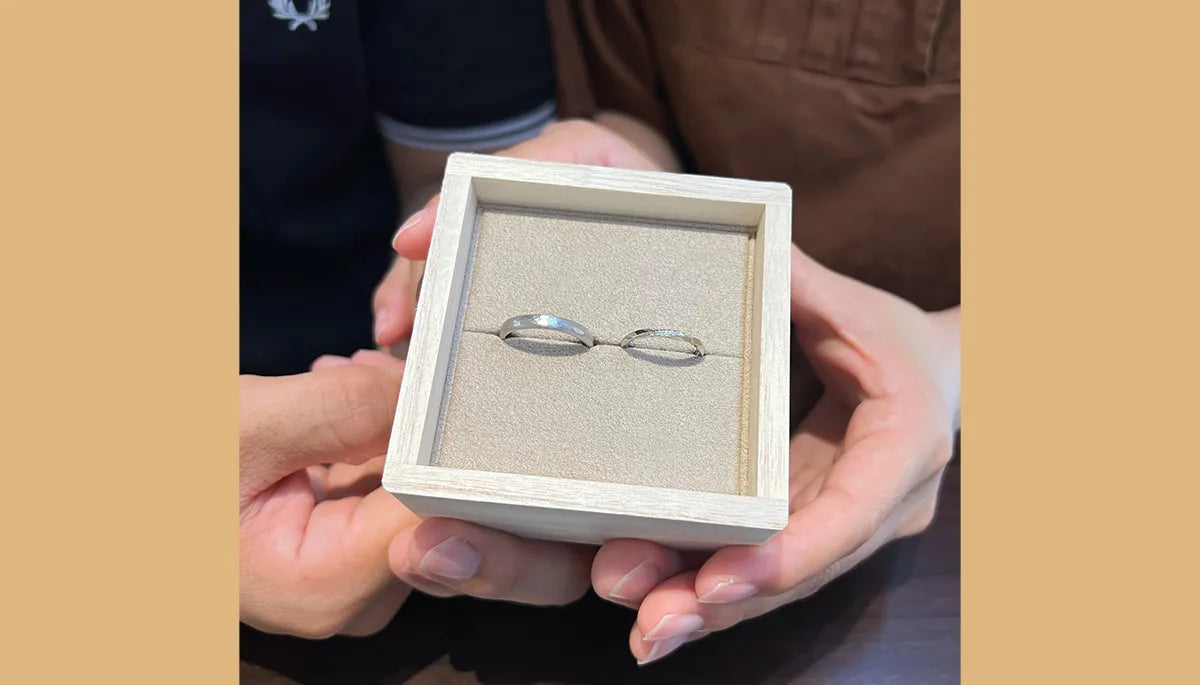 K様&S様この度は、当店にご来店いただき誠にありがとうございました。お二人と楽しく指輪選びをさせていただけたこと、大変嬉しく思います!お二人には、手づくりならではの自然さやあたたかさが素敵なYUKA HOJOのご結婚指輪をお選びいただきました。女性様は「Ray of light」を、男性様は「Passage of time」をお選びいただき、お二人ともとてもお似合いでした✨またお会いできることを楽しみにしております😊