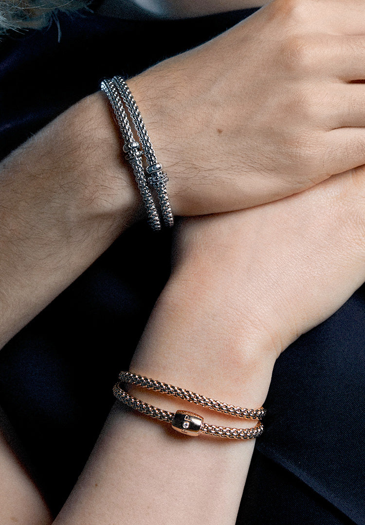 発表以来、18Kゴールド製ラウンドメッシュチェーンを採り入れたアイテムが少しずつ加わり、さまざまなカラーやスタイルの組み合わせをお楽しみいただけるようになりました。柔軟性に富むブレスレットのゴールドメッシュには、ゴールド製ループやサイズの異なるダイヤモンドをあしらった数々のバージョンも加わりました。