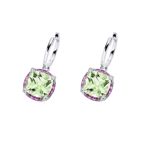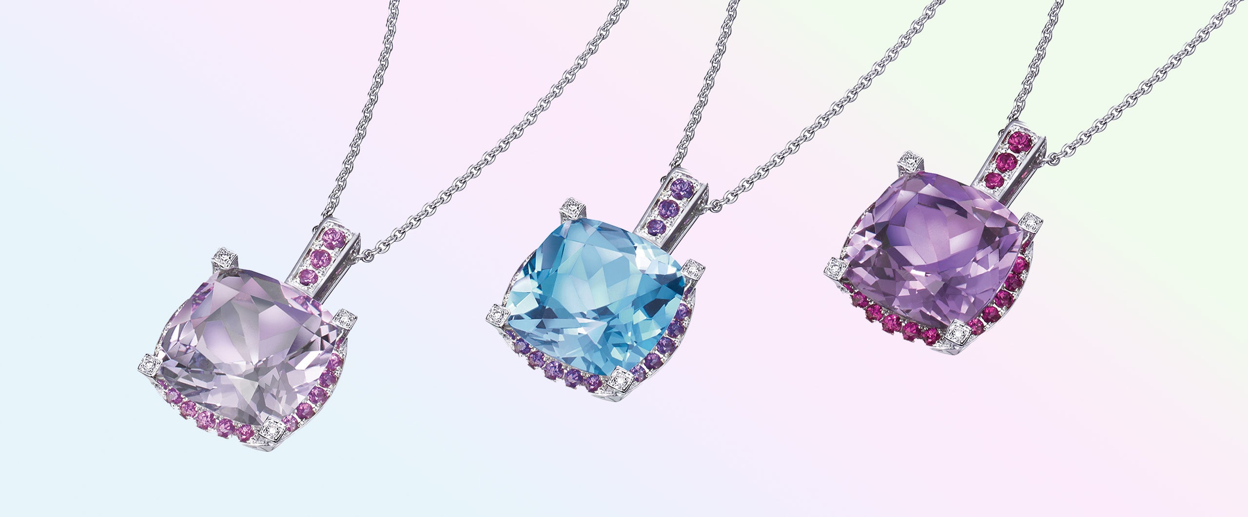 大粒のセンターストーンとそれを取り囲むカラーパヴェの説妙な色合わせに、パリ生まれのジュエラーらしい感性が光ります。