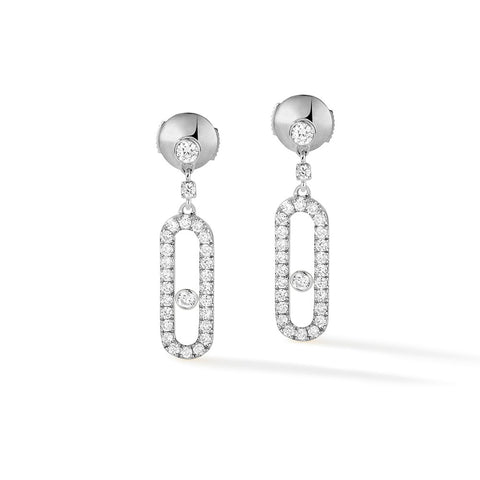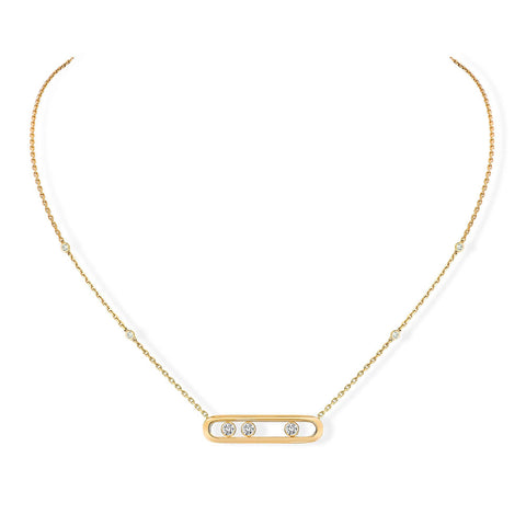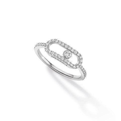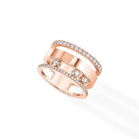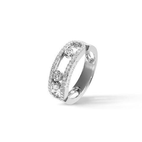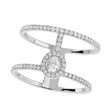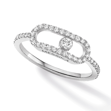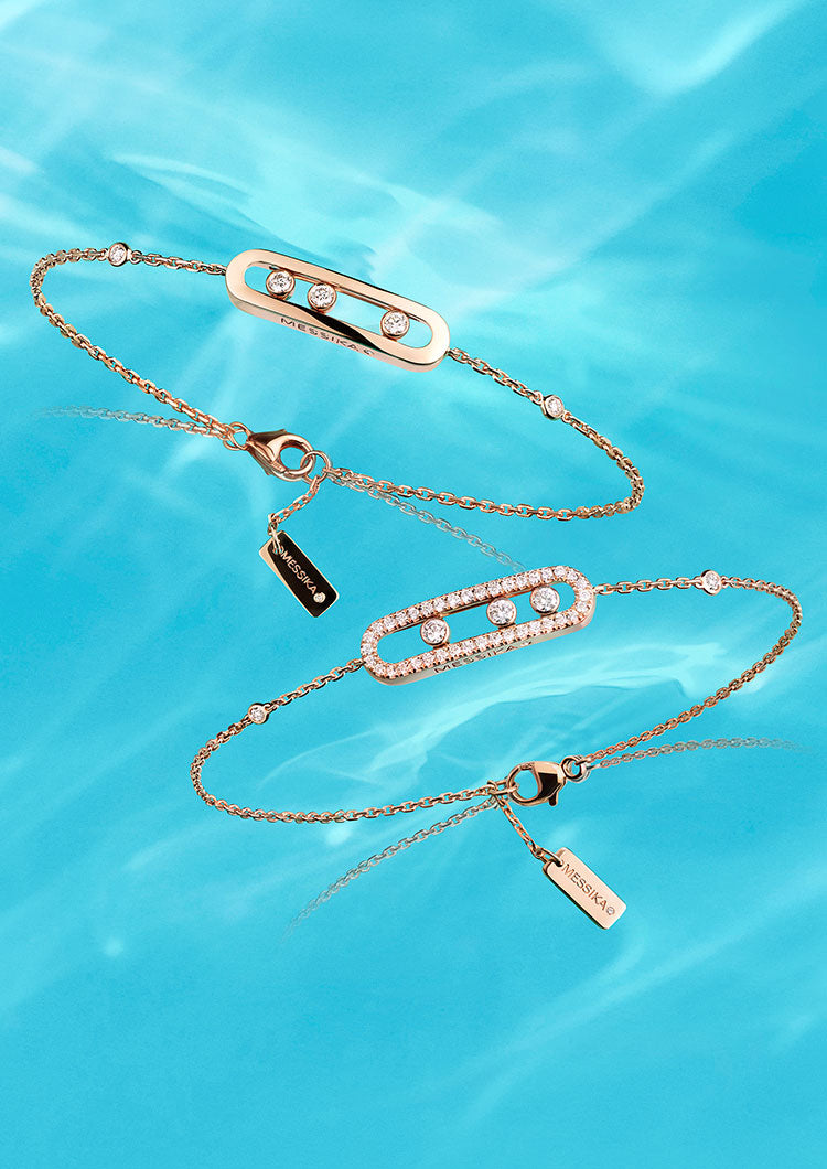 3つのダイヤモンドがフレームの中で自由に動く「ムーヴ コレクション」は、ひと目でメシカとわかるアイコニックなデザイン。