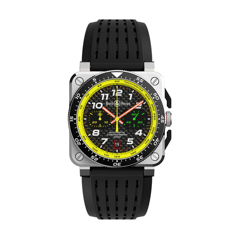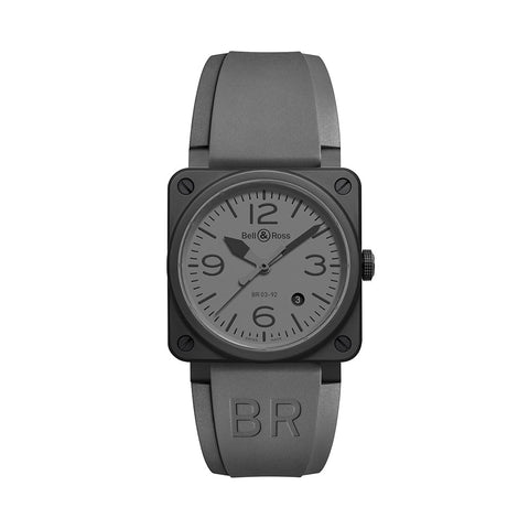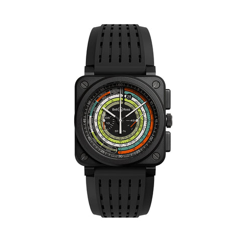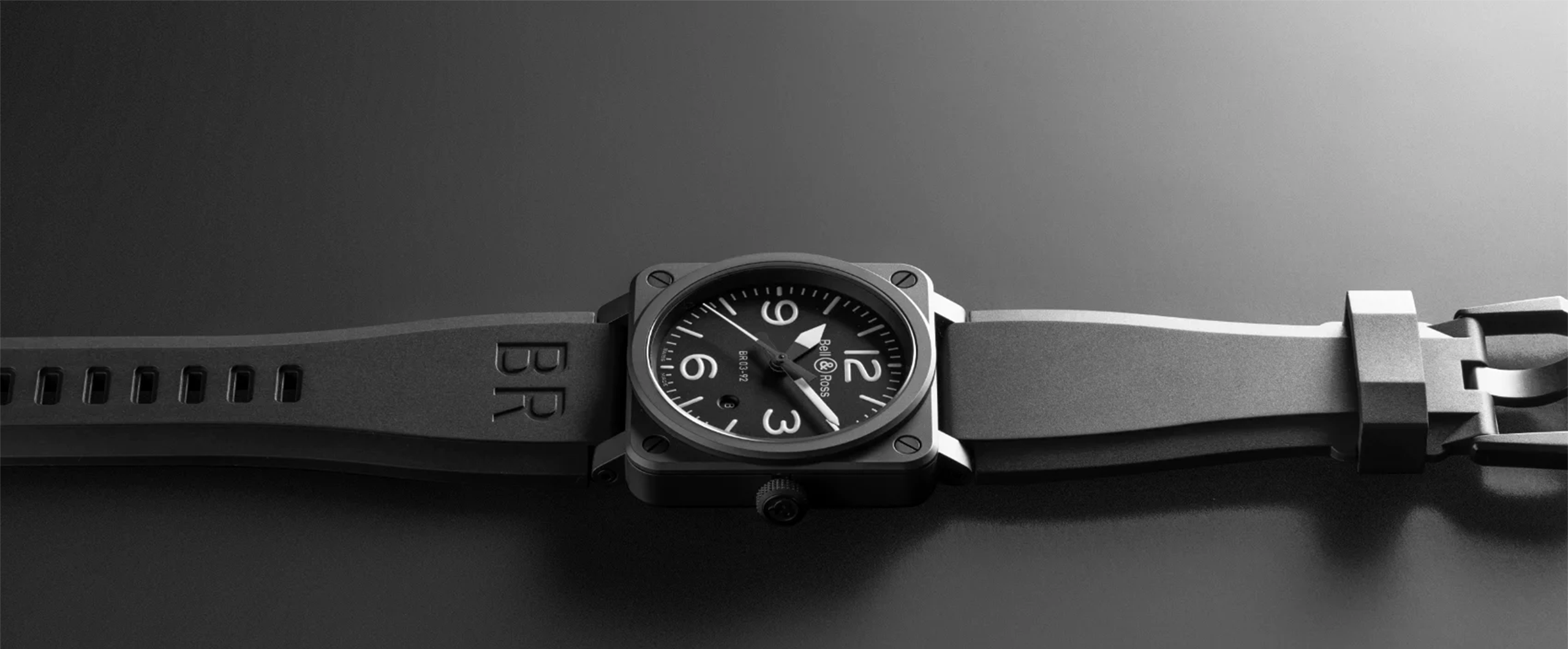 2006年に発表された「BR 03」。前年に発表された「BR 01」をコンパクトなサイズにまとめあげ、新たにデイト表示を追加したモデルとしてファンに愛されています。1997年にSinn(ジン)との契約を終えたベル&ロスは、コックピットの計器からインスピレーションを得たスクエア型のユニークな時計を作ることを決意。実際のプロフェッショナル達からの意見に耳を傾けるだけでなく、ブランドとしてのオリジナリティと良好な視認性にも配慮を加えた結果、生粋のミリタリーウォッチではなくあくまでミリタリーテイストを盛り込んだ時計として「BR 01」という傑作が生まれました。その意匠は現在の「BR 03」へ受け継がれ、よりメンテナンスや防水性といった安全性を向上させるなど高い完成度を誇る至高の実用時計として親しまれています。