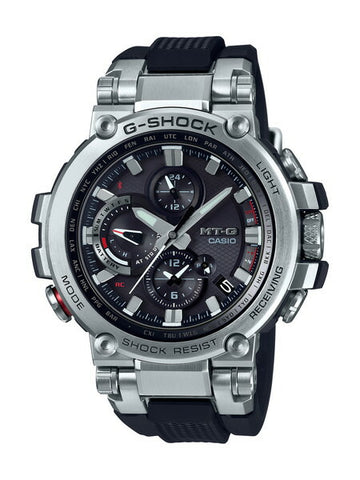 G-SHOCKの耐衝撃構造に、メタル素材の質感を融合させたハイブリッドデザインが特徴です。