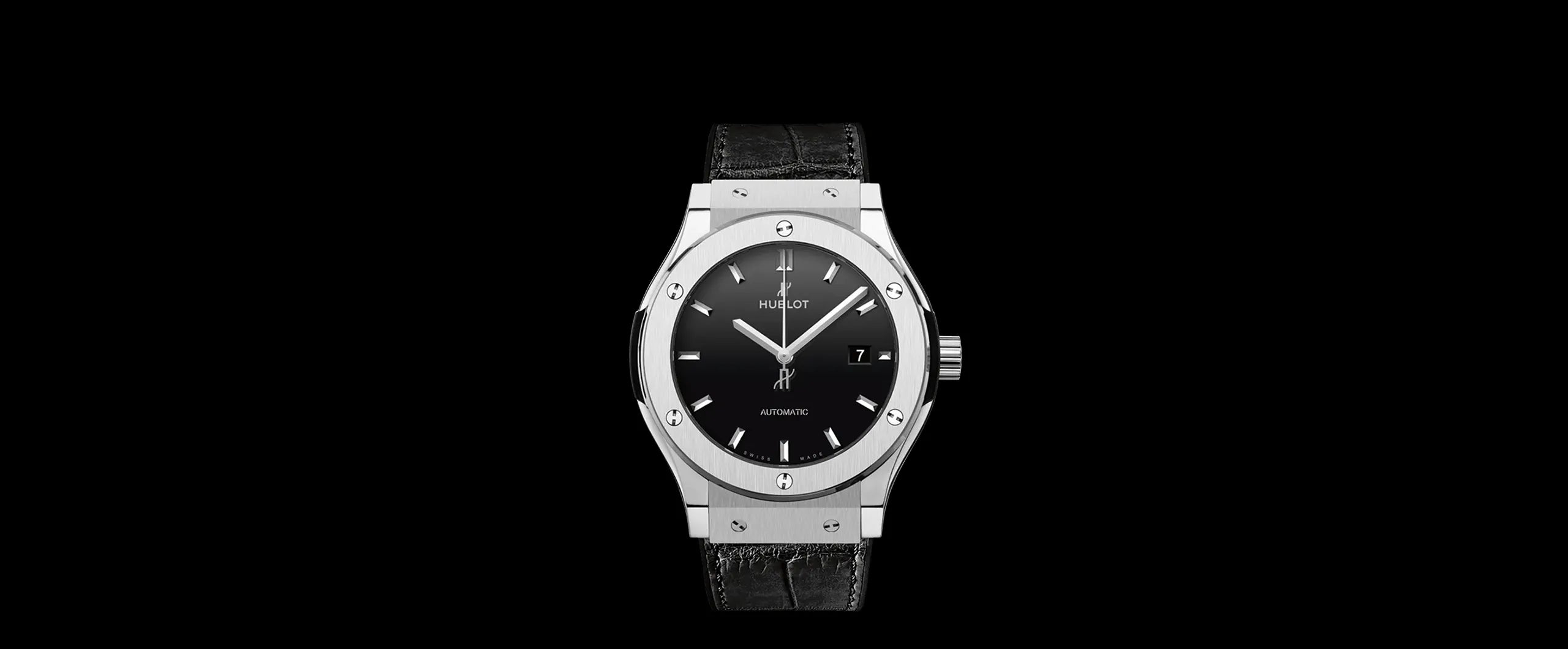 ユニークで力強く、本質的な魅力の「クラシック・フュージョン」は、クラシカルなエレガンスにウブロらしい雰囲気を添えたコレクションです。バラエティ豊かなムーブメント、デザイン、素材、カラーで表情が変わる、独自のスタイルを確立しています。「クラシック・フュージョン」に使用されている素材「チタニウム」は特に軽量であることから、ウブロでよく使用されています。あらゆる金属の中で重量と耐久性の最も優れた比率を兼ね備え、特に航空産業で重用されている素材です。また、腐食耐性に優れ、肌に優しい点でも卓越しています。ウブロは最高品質のグレード5のチタニウムのみを採用しています。一度研磨にかけると、この素材はわずかに青みを帯びた金属性の輝きを放ちます。