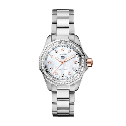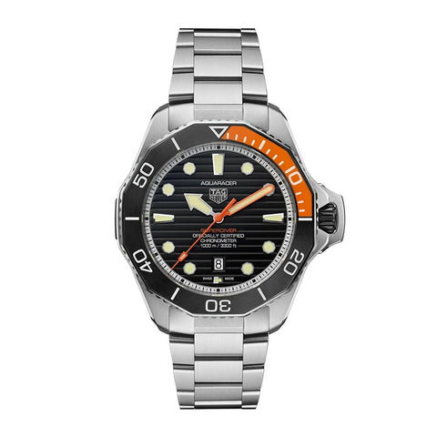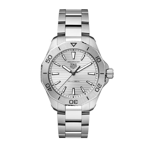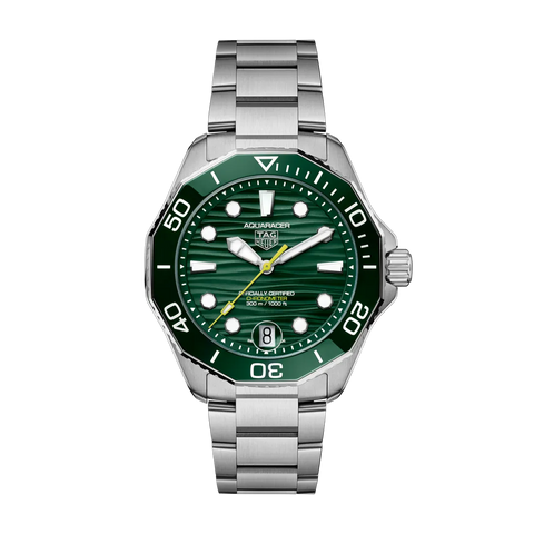 タグ・ホイヤーは今から100年以上前に時計の防水ケースを発明し、人々に海底の世界を発見させる上で大きく貢献しました。アクアレーサーは、常識となっている限界に挑戦し、これを超えるパイオニアとしての役割を果たしてきました。強靭でエレガントなトレンドセッター「アクアレーサー」は、数百メートルの水圧に耐えるよう、完全な防水検査をクリアしています。真のスポーツウォッチとしての正当性と流行の先端を行くコンテンポラリーなデザインを兼ね備えたモデル、それがアクアレーサーです。既成概念にとらわれない、大胆でスポーティなデザインと、ゴージャスなファセット加工のベゼルを始めとする、スタイリッシュな仕上げを誇ります。あらゆる状況下で高い信頼性を誇るタイムレスなスタイルのプロフェッショナル用計器として、アクアレーサーは新しい伝説を創ります。