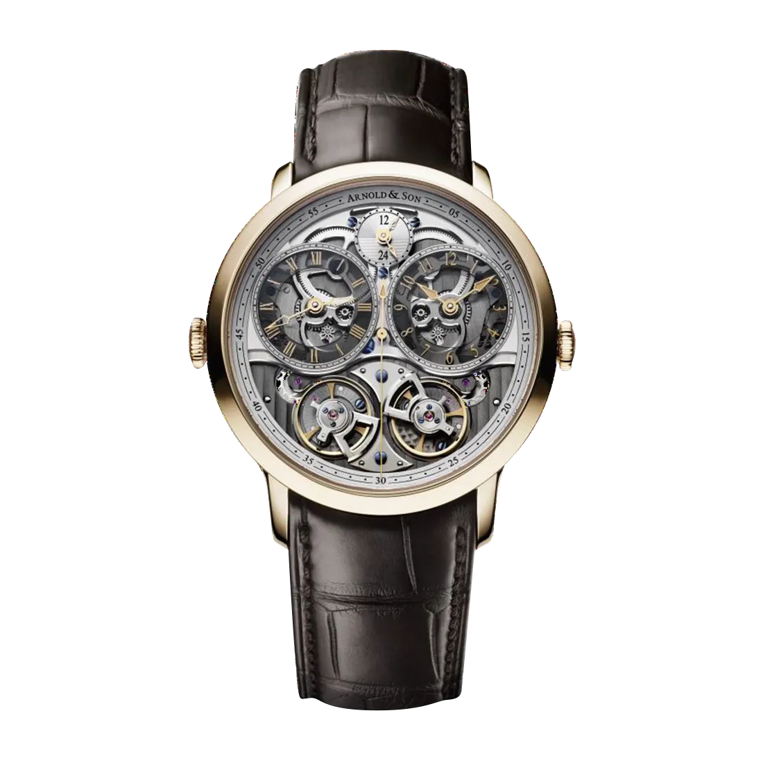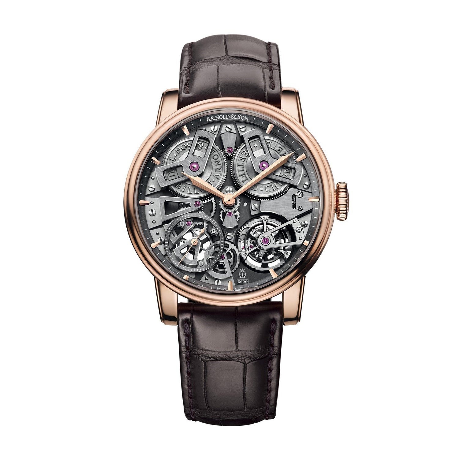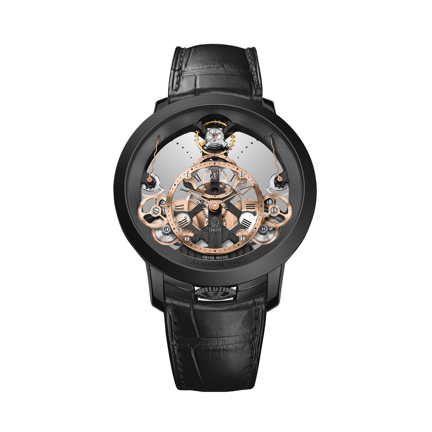 アーノルド&サン ウルトラシン トゥールビヨンは、同ブランドで最も知名度の高いモデルのひとつです。この時計はキャリバーA&S8300を搭載しており、厚さはわずか2.97mmで、これまでに作られたトゥールビヨンムーブメントの中で最も薄いもののひとつです。