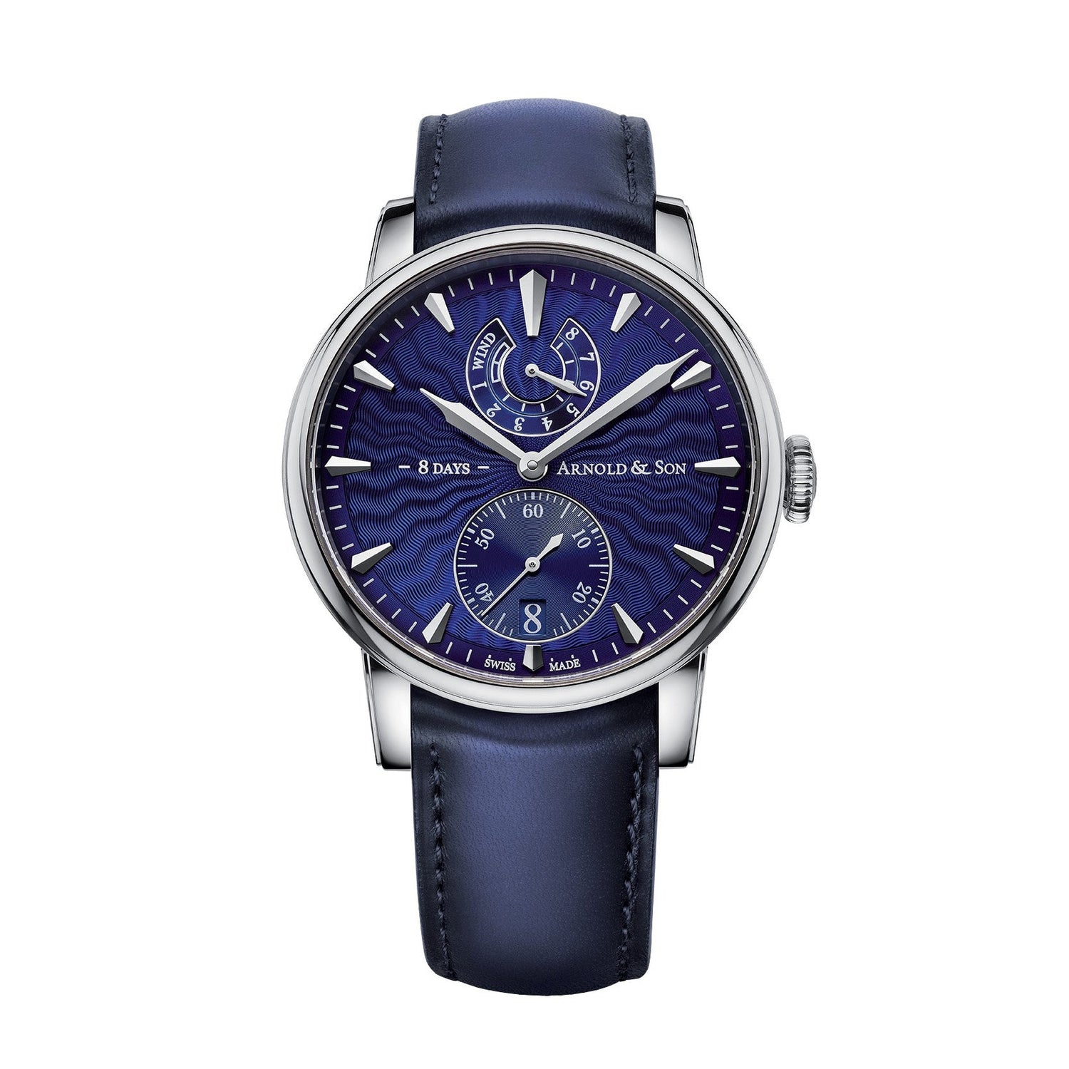 アーノルド&サン エイトデイ・コレクションはその名の通り、8日間というロングパワーリザーブを備えており、ムーブメントは18世紀のムーブメントの設計を基にした手巻きキャリバー、A&S1016です。 エイトデイ コレクションにはさまざまなモデルが用意されています。各モデルは、ムーンフェイズ表示、セカンドタイムゾーン、パワーリザーブインジケーターなど、独自のデザイン特徴や複雑機構を備えています。
