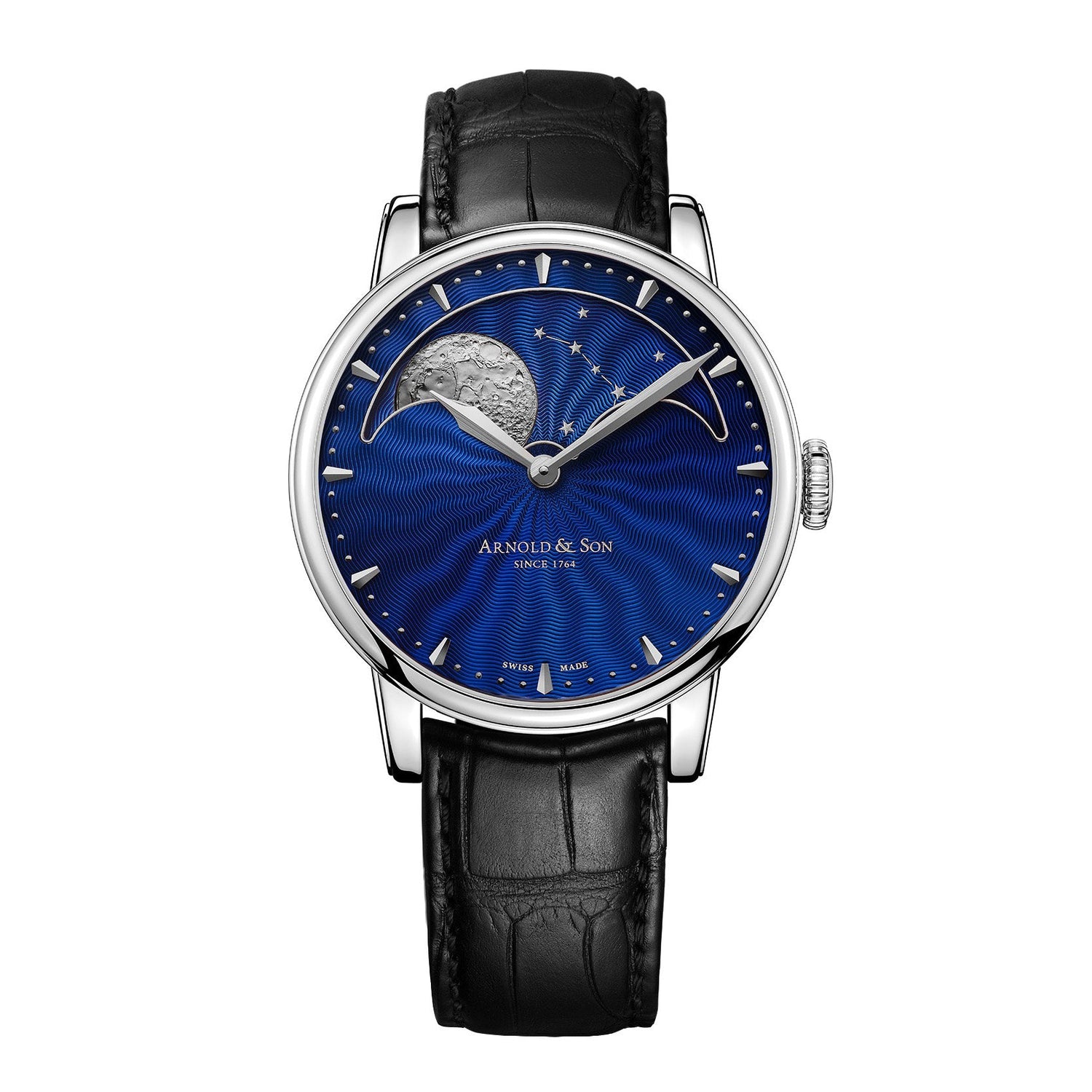 アーノルド&サンは18世紀に活躍したイギリスの偉大な時計職人で、独創的な発想とマリンクロノメーターの研究で有名なジョン・アーノルドの遺産を永続させるウォッチブランドです。 パーペチュアル ムーンは、122年ごとに1日のずれが生じる精密なムーンフェイズが特徴です。直径29mmのゆったりとした開口部には煌びやかな月が収められています。