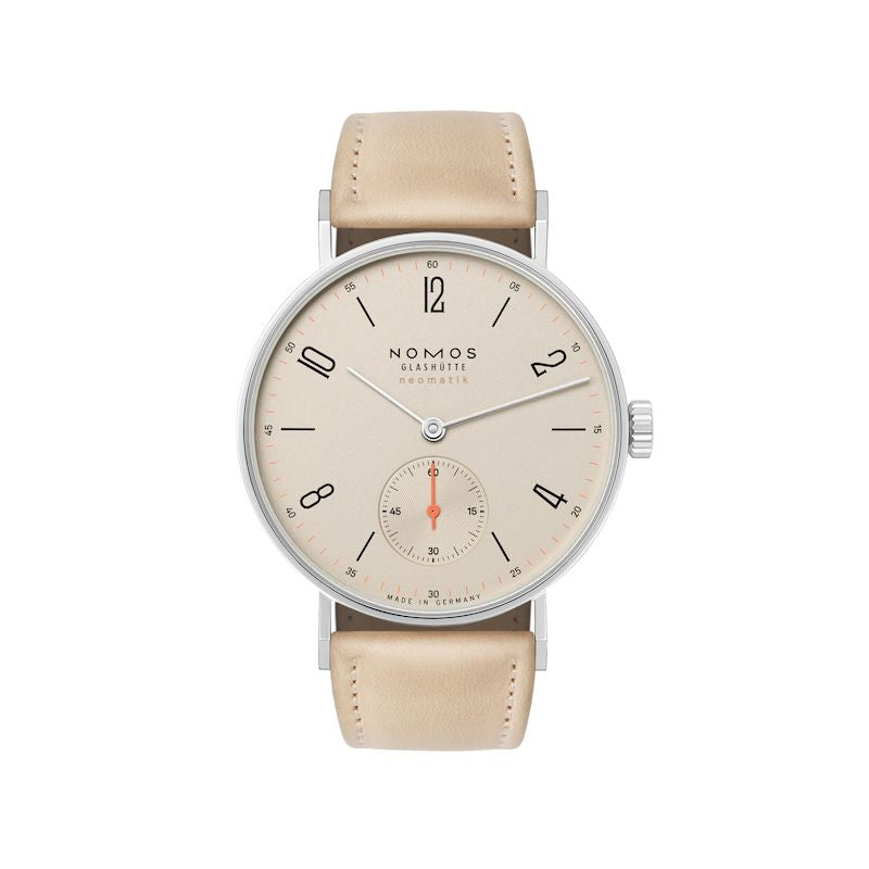ノモス グラスヒュッテの代表コレクション「タンジェント」。ラウンドケースとスクエアな形状で、ほかの誰でもないグラスヒュッテの時計製造会社を体現しています。殆どのモデルが5つのアラビア数字と6時位置のスモールセコンドを備え、タンジェントは30年間にわたり絶え間ないベストセラーであり、デザインクラシックとして手首の定番となっています。ケースサイズは、繊細な 33mmから、スポーティーな42mmまで、豊富なバリエーションを誇り、どのモデルも大変薄く作られています。これはノモス グラスヒュッテが独自に開発した、自動巻キャリバーDUW 3001、DUW 6101が大きく貢献しています。