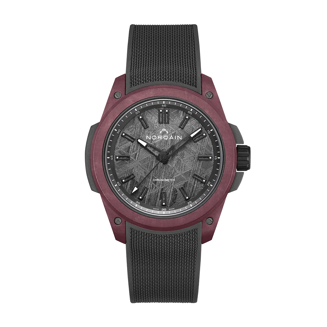インディペンデンスは、ノルケインの3つのコレクションの中でも最も斬新で革新的なコレクションです。スケルトン仕様やMOP文字盤がラインナップされいますが、2022年に発表されたインディペンデンス ワイルドワンは、新素材「NORTEQ-ノルテック-」を採用した革新的なスポーツモデルです。スチールの約1/6、チタンの約1/3の軽さを備えながら、さまざまなカラーバリ エーションを実現したこの素材は、スイス時計の伝説的リーダー「ジャン・クロード・ビバー」や、スイス最高峰のサプライヤーとの共同開発により、時計産業における世界初の素材となりました。ワイルドワンは、インディペンデンスコレクションをベースとしながら、独自のケース構造やダイアルデザインを施し、ノルケインの躍進と挑戦を表現しています。