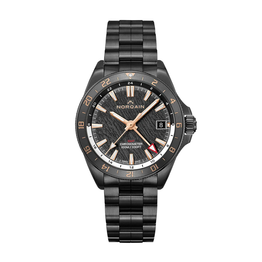 自由とは、普遍の価値である。デザインは正統的でありながら、細部へのこだわりを積み重ねることで信じられない美しさを実現したのがフリーダムのコレクション。1960年代のスイス時計の特徴であるスクエアカットの 風防ガラス、驚くほどしなやかなヴィンテージ仕上げのレザーに「NORQAIN」ステッチを施したストラップを備えるスイス時計への情熱が、細部に宿っている。ケースサイズは3タイプ、43mm・40mmのクロノグラフ、40mmのGMT、34mmの3針モデルが用意されており、全て機械式自動巻。特に40mmのGMTモデルは、ノルケインマニュファクチュールキャリバーNN20/2が搭載され、ムーブメントメーカーのケニッシとのパートナーシップの一環として2020年2月に発表された。
