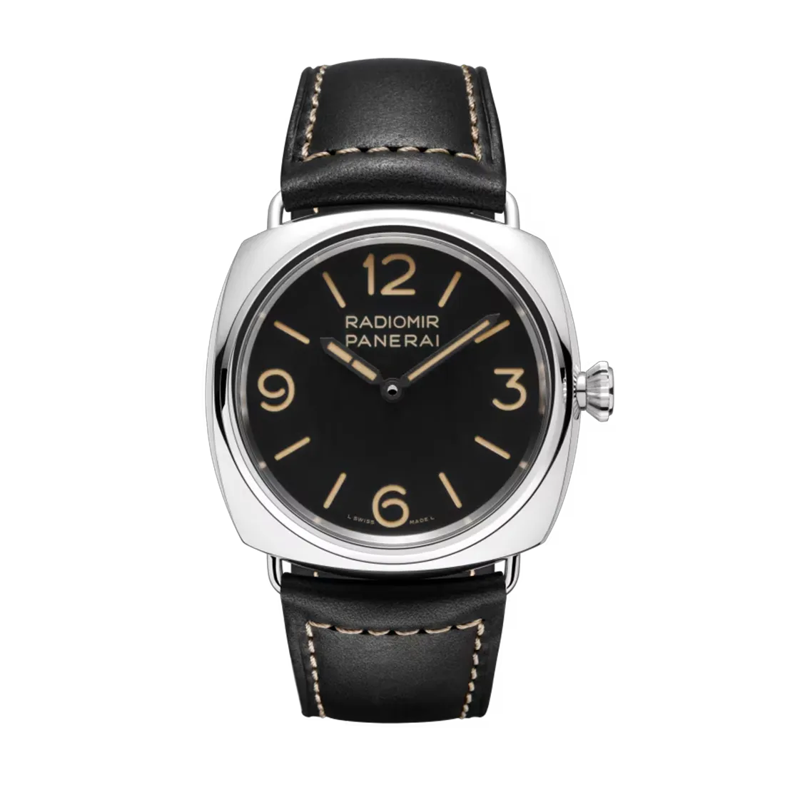 「ラジオミール」の誕生以前より、イタリア海軍の精密機器納入業者として関係を築き発展していったパネライは、1916年に臭化ラジウムをベースとした高い蛍光性を有する物質を発明。様々な軍事精密機器にこの物質を役立たせることでその地位を不動のものとしていきます。やがてこの蛍光物質は「ラジオミール」と名付けられ特許を取得、1938年のパネライ初の腕時計にもその名が授けられることとなります。視認性に優れた幅47ミリのスティール製ケースと、12角形のねじ込み式裏蓋、円筒型のねじ込み式リューズは当時の「ラジオミール」の仕様として親しまれ、自国の為に命を懸けて戦う英雄達を支える大きな力となりました。他のブランドと比べても華やかな装飾やトレンドを意識したディティールの作り込みこそありませんが、ミリタリーウォッチの先駆けとして語り継がれる名品です。