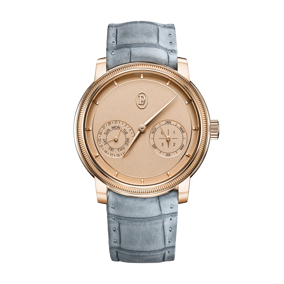 その名の通り、ルミノールの第二章として2016年にデビューした「ルミノール ドゥエ」。「ルミノール」「サブマーシブル」シリーズと同様に、ブランドのアイデンティティとも言えるリューズプロテクターが備え付けられていて、「ルミノール」シリーズと比べケースの厚みが約40%薄く設計され、シャープでエレガントなディティールは老若男女問わず着用いただけるシリーズとなっています。以前までのパネライは大きくて厚みのあるデザインのみが注目されていましたが、「ルミノール ドゥエ」の登場によって新しいユーザーの方々が増え、近年では人気のコレクションへと昇華されました。お客様自身がワンタッチで交換出来るストラップシステム「クイックリリース システム」を採用。お洋服とのコーディネートや全体的なスタイリングの楽しさを気付かせてくれるコレクションです。