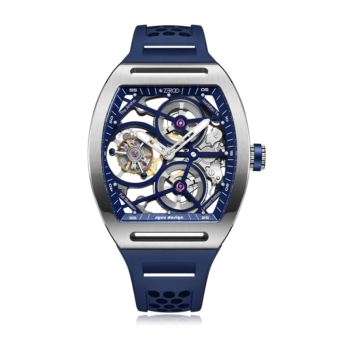 機械式時計の最高峰であるトゥールビヨン。側面からもムーブメントを楽しめるフルスケルトントゥールビヨン搭載の、ZEROOブランドを代表するシリーズ。