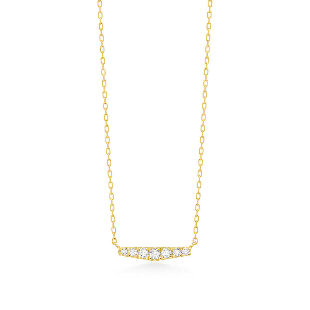 “Premiere Etoile(一等星)の輝き”をテーマにしたイニシャルネックレス。溢れる輝きがモチーフから零れ落ちていくような、甘く柔らかな光の表情を引き出すため、地金の露出を最小限に抑え、ダイヤの位置に高さをもたせた、繊細なセッティングを施しています。また、モチーフの面が緩やかにカーブしていることで、光が全方位に広がり、奥行きのある、立体的な輝きが感じられます。同コレクションのプルミエトワールネックレスと合わせて、統一感のある重ねづけを楽しめます。