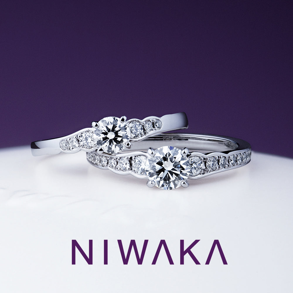ダイヤモンドをより美しく演出するだけでなく、普遍的かつ洗練された気品あるデザインとなっています。台座とアームの一体感は俄の技術力によって表されており、サイドから見る美しさを感じていただけます。