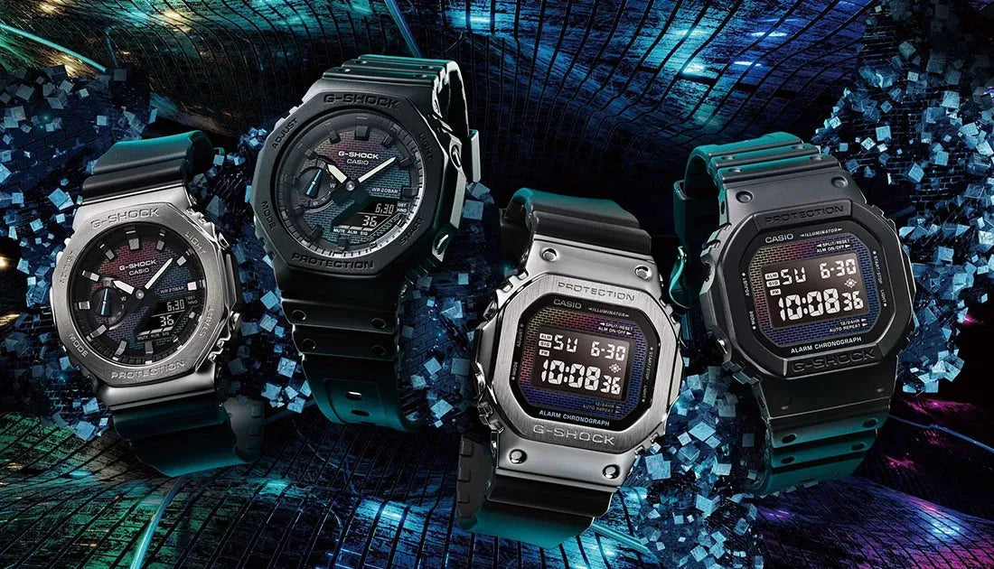 今回は、大人気モデルの5600・2100シリーズをベースに、レインボー文字板のイチオシ新作『Rainbow Brick Wall series』が登場しました。