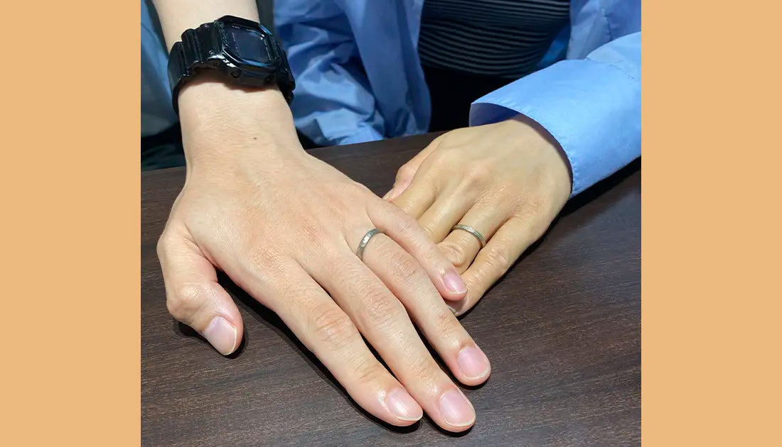 結婚指輪といえば、「お揃い」というイメージがあったが、色やブランドが同じであれば、一緒に着ける結婚指輪として、二人で素敵に着けられると思った!