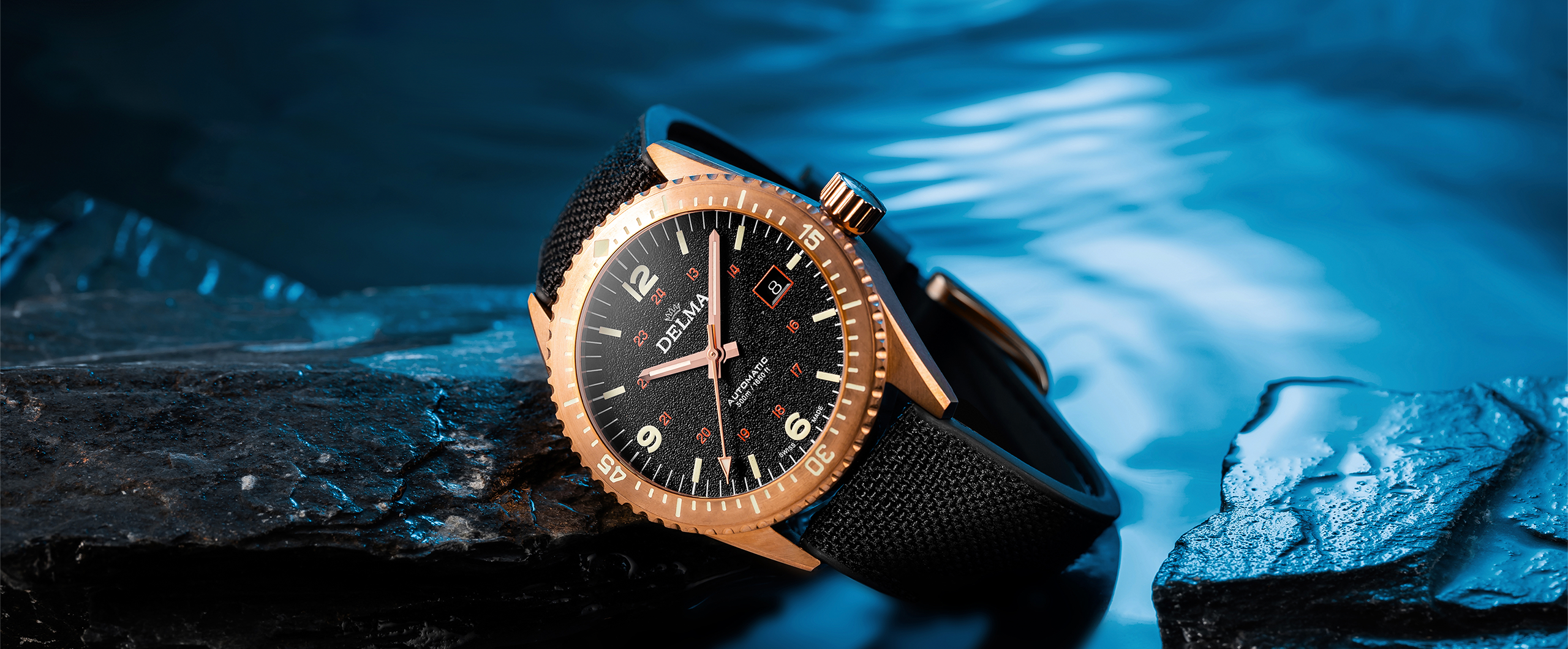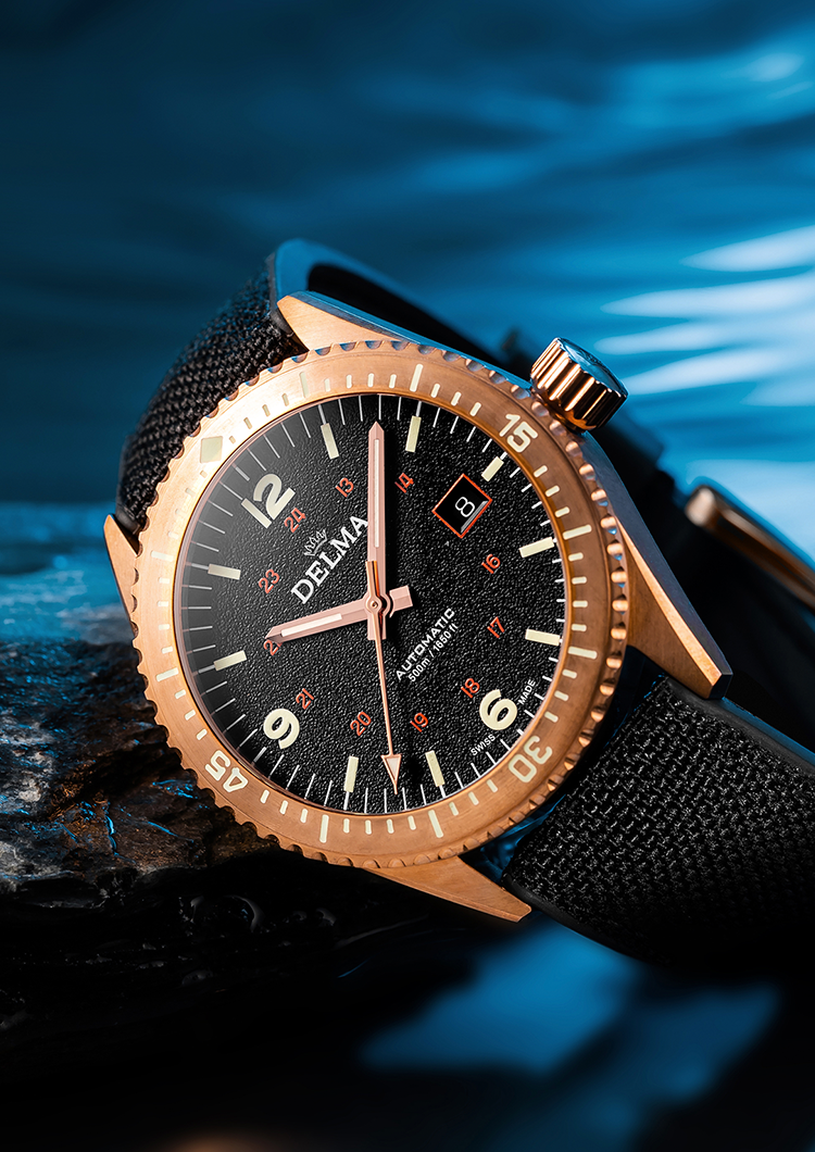 The Cayman series is a Delma diver's watch released in the 1970s when recreational diving became a global boom. Precision details and unique finishes are inspired by the diversity and beauty of nature. A revolutionary skin diver's watch with strength and resilience for deep-sea adventures without a wetsuit. Cayman focuses on comfort and style, and one of the points is that it uses a smaller case than other series. The band material is a hybrid type cordura and rubber strap that fits your wrist. The strap features a quick-release spring bar that can be easily replaced for a comfortable fit. The Cayman series developed in Japan uses bronze as the case material.