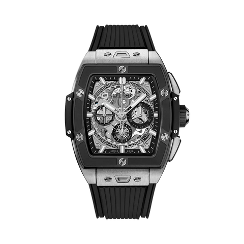 A collection in which Hublot has created a "tonneau" shape that retains the spirit and characteristics of the "Big Bang". With its skilfully assembled multi-layer structure, the case opens the door to fusion, where materials, colors and finishes can be combined in many different ways. The caliber HUB4700 installed in the "Spirit of Big Bang Chronograph" is the world's first integrated self-winding chronograph, born in 1969. Moreover, it operates at 5Hz (36,000 vibrations per hour), enabling high precision of 1/10th of a second. ), the successor to the El Primero caliber, the world's first mechanical chronograph with high-speed oscillation. Born from the perfect blend of tradition and innovation, this completely skeletonized legendary movement, now fitted with a silicon regulator, guarantees performance, precision and a whole new level of safety.