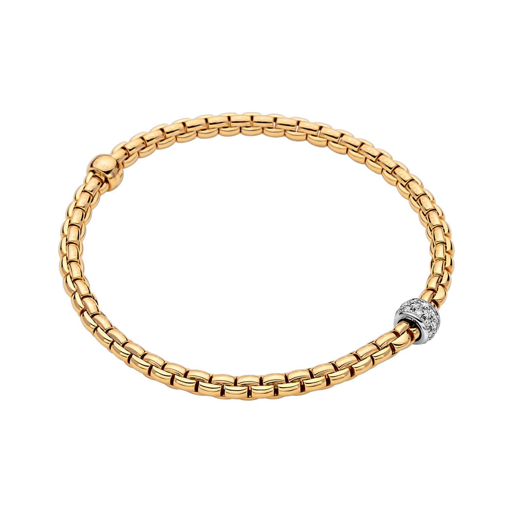 5つのコアコレクション(Prima、Solo、Eka、Vendôme、Panorama)から発売される、新しいマストハブコレクション。 FOPEのシグネチャーである伸縮するブレスレットのコンセプトを共有しながら、ブランドのDNAに基づいて再設計されました。 ブレスレットにセットされたプレーンゴールドのロンデルには、FOPEの「o(オー)」に1粒のホワイトまたはブラックダイヤモンドがセットされています。さりげないアクセントは、男性と女性の両方にアピールします。