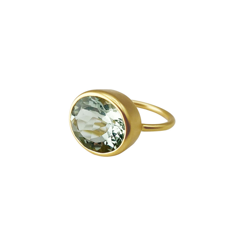 愛の可愛い顔 光彩の泉のように豊かに煌めく丸みを帯びたスクエアカットがモダンな大粒の色石リング。透明感に溢れ、肌なじみの良さも魅力です。