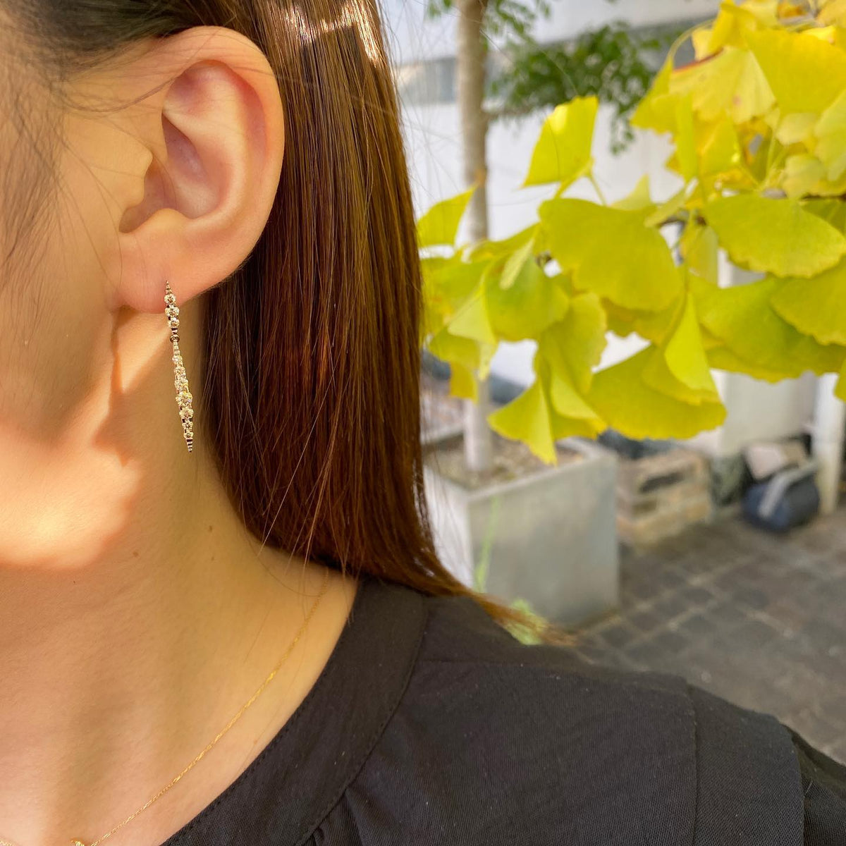 A gradation that makes the most of the light and shade, a combination with white diamonds... sometimes casual, sometimes elegant, the design possibilities are truly endless. Whether you wear it casually with a simple shirt style or match it with dressy clothes, it casually speaks of adult elegance. As a new expression of your individuality, how about enjoying brown diamonds casually and freely? like me. Be more free. Combination pierced earrings <chic> to enjoy asymmetrical style. Different designs on the left and right, some on one ear... Enjoy a new expression by combining them freely. Brown diamonds color casually and chicly.