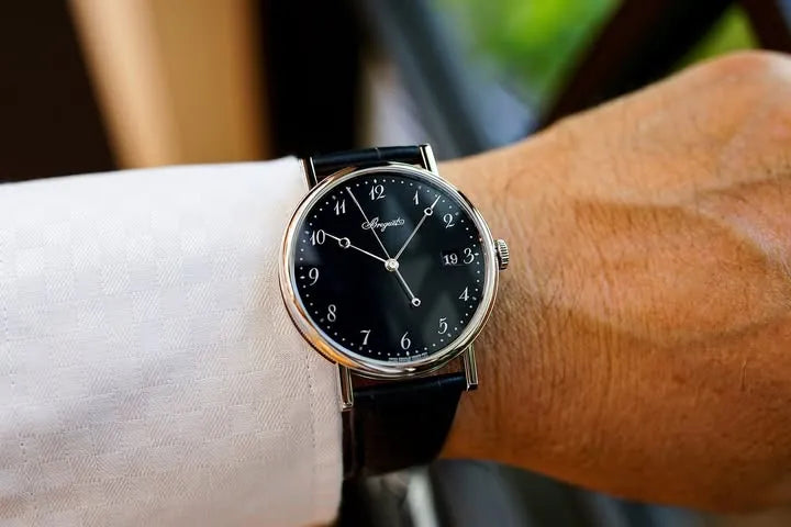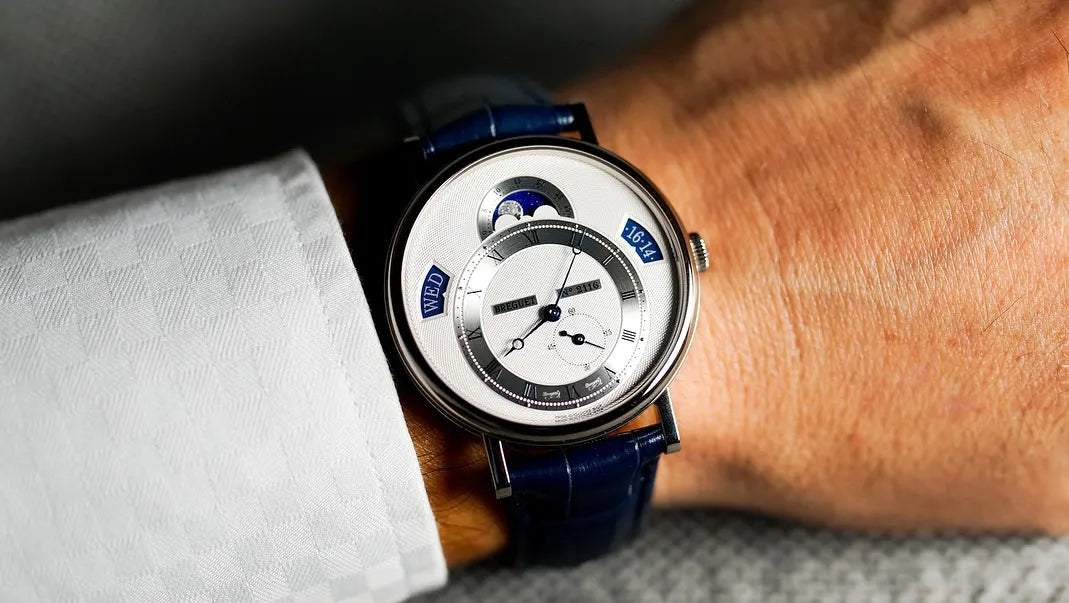 Inspired by the great legacy of the original Breguet as the manufacturer of marine chronometers for the French Navy, the "Marine" is a modern watch that inherits Breguet's traditional qualities while creating a more sporty watch. I am wearing a fancy outfit.
