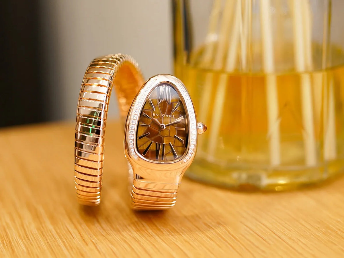 Serpenti is the most iconic symbol of Bvlgari design. Serpenti watches are reminiscent of the voluptuous curves of a woman and the graceful appearance of a snake. A beautiful line created by a special technique conveys supple flexibility.