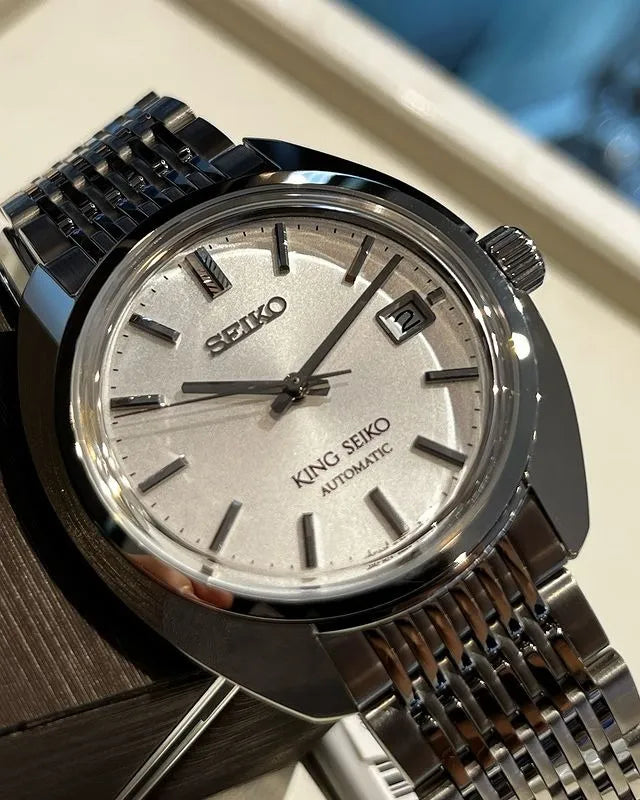 キングセイコーが2022年に満を持してセイコーのラインナップに復活した際のシリーズ第一弾。 ケース系は37mmと小ぶりでドレッシーな仕上がりに。 KSKデザインならではのカッコよさは勿論、小さいながらもしっかりと存在感を感じられます。