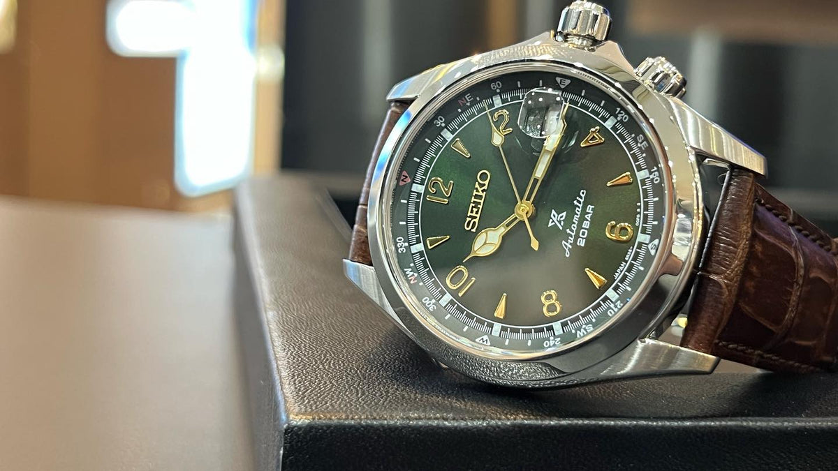 With its roots in Seiko's first sports watch, the Laurel Alpinist, which was born in 1959, A classical sports watch suitable for trekking and mountaineering. The 38mm case fits neatly into a suit-style cuff.