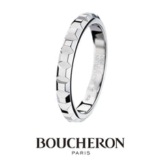 Boucheron's symbolic motif "Clou de Paris" expresses the romantic spirit of Paris, the City of Light, and the cobbled streets of Place Vendôme. The masterful engraving in pink gold catches the light and sparkles like a diamond. A ring that celebrates eternal love with a bright glow, as if to celebrate the bond between two people. The gentle shade of pink gold has both the glamor of gold and the familiar softness.