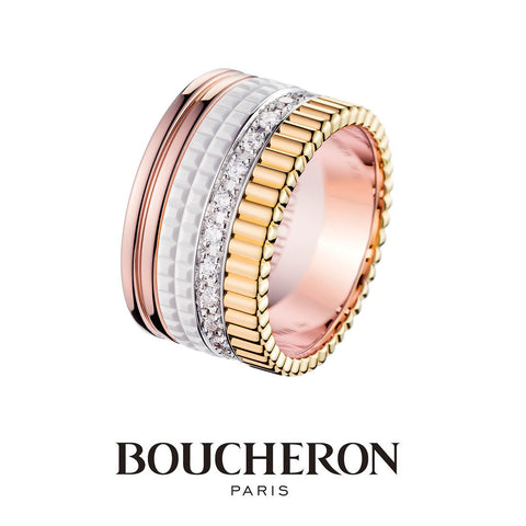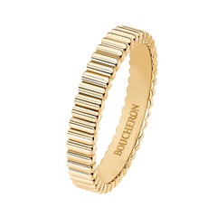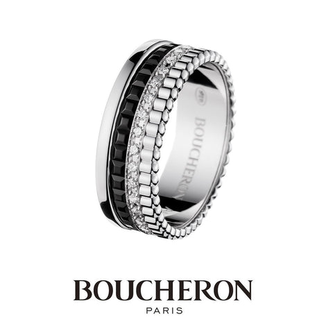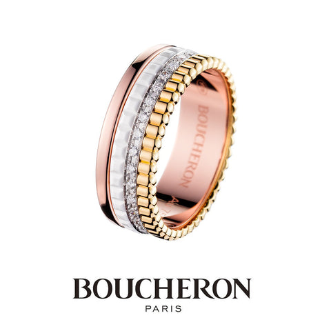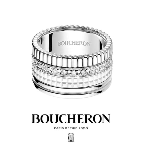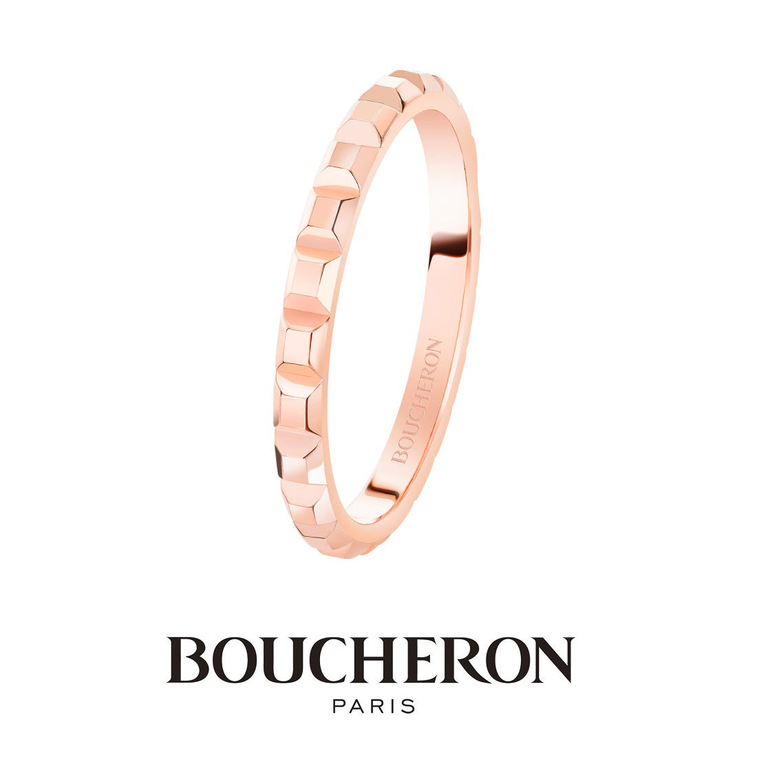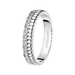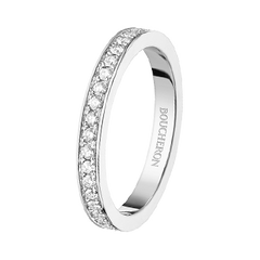 Boucheron's symbolic motif "Clou de Paris" expresses the romantic spirit of Paris, the City of Light, and the cobbled streets of Place Vendôme. Skillfully engraved in platinum catches the light and shines like a diamond. A ring that celebrates eternal love with a bright glow, as if to celebrate the bond between two people. This ring can be used as a simple marriage ring, or layered with other motifs for an original look.