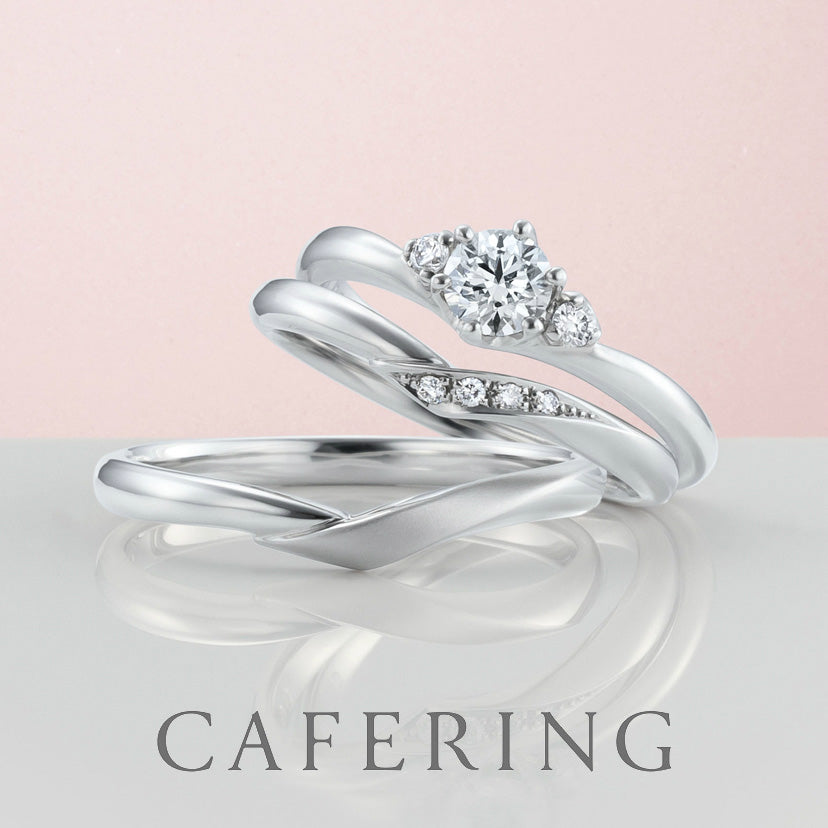 CAFERING's bridal rings feature elegant and lovely designs that make your fingers look beautiful. We carefully create our products with "suppleness" and "lightness" so that you can use them comfortably every day. The engagement ring is designed so that the stone seat of the center diamond is slightly held down so that it does not get caught. In addition, the platinum claws that hold the diamonds are beautifully designed in detail by skilled craftsmen so that the diamonds emit the most beautiful brilliance. Wedding rings can be customized according to your style and taste, so you can enjoy choosing a ring regardless of gender.