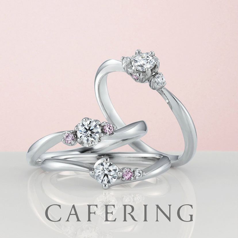 CAFERING's bridal rings feature elegant and lovely designs that make your fingers look beautiful. We carefully create our products with "suppleness" and "lightness" so that you can use them comfortably every day. The engagement ring is designed so that the stone seat of the center diamond is slightly held down so that it does not get caught. In addition, the platinum claws that hold the diamonds are beautifully designed in detail by skilled craftsmen so that the diamonds emit the most beautiful brilliance. Wedding rings can be customized according to your style and taste, so you can enjoy choosing a ring regardless of gender.