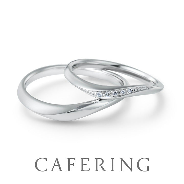 CAFERING's bridal rings feature elegant and lovely designs that make your fingers look beautiful. We carefully create our products with "suppleness" and "lightness" so that you can use them comfortably every day. The engagement ring is designed so that the stone seat of the center diamond is slightly held down so that it does not get caught. In addition, the platinum claws that hold the diamonds are beautifully designed in detail by skilled craftsmen so that the diamonds emit the most beautiful brilliance. Wedding rings can be customized according to your style and taste, so you can enjoy choosing a ring regardless of gender.