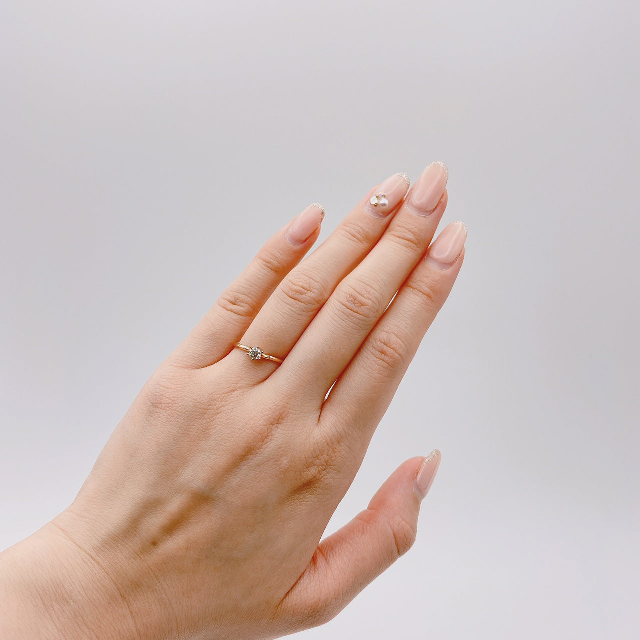A simple one-stone solitaire ring that goes well with wedding rings and is easy to stack. Especially the design from the side is cute and impressive, so it is a perfect engagement ring for fashionable people.
